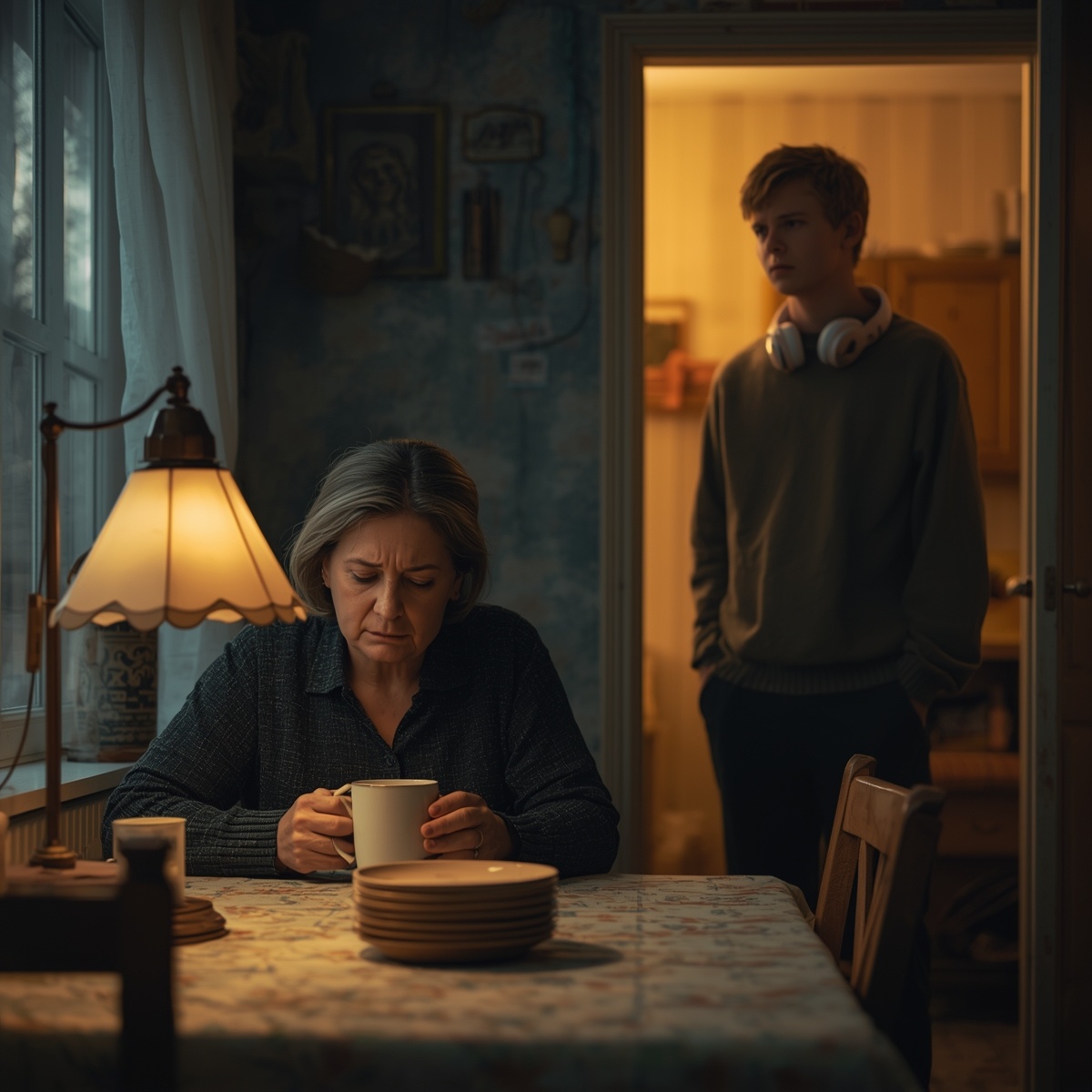 Тишина повисла тяжёлая, давящая. Анна стояла и смотрела на сына, а он смотрел в ответ, и между ними пролегла пропасть - глубокая, холодная, непреодолимая.