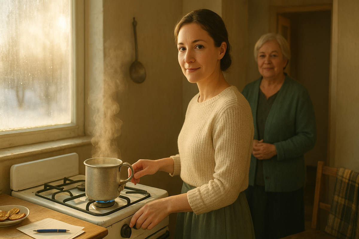 Газ щёлкнул, чугун выдохнул, молоко скользнуло в кружку мягко, как в одеяло. Шипение началось раньше огня — тонкое, настойчивое, как голос, который не смолкает, пока его не услышат. «Нинок!» — будто из старого двора, с той интонацией, где на «к» лежит тепло. Память сработала как выключатель, но не отключила — включила тишину, в которой всё слышно. Запах хлебной корки, тёплая молочная сладость, лёгкая коровья нота — до улыбки, до горечи на кончике языка. Она убавила огонь и сказала в пустоту: