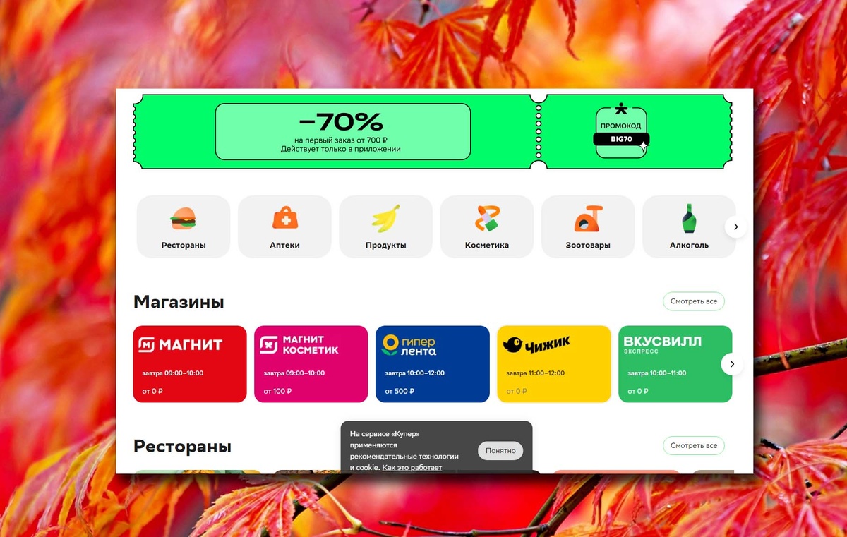 Купер в ноябре 2025 – убрали большую часть промокодов, но все еще можно получить скидку на заказ 70%