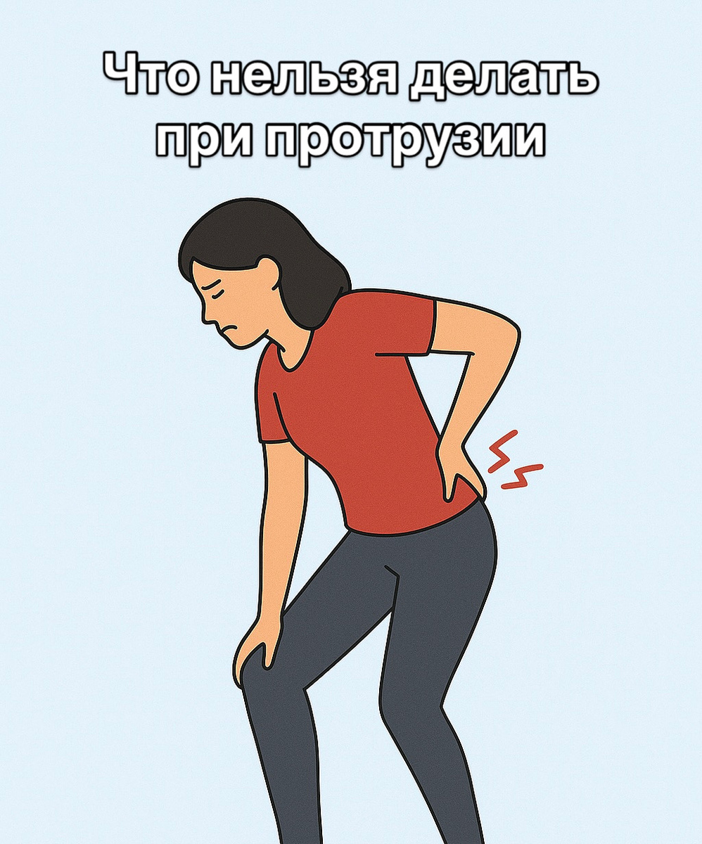 Что нельзя делать при протрузии позвоночника Если у вас диагностировали протрузию — важно не усугубить ситуацию. Вот что стоит запретить себе прямо сейчас: 🚫 Резкие наклоны и скручивания Любые «подкручивания» спины, попытки «поставить позвонки на место» сами — могут усилить давление на диск. 🚫 Поднимать тяжести И особенно — рывком. Даже сумка с продуктами может стать триггером боли. 🚫 Силовые нагрузки без контроля специалиста Тренировки «до жжения» в спине — не укрепляют мышцы, а добивают диск. 🚫 Длительное сидение без опоры Сидя нагрузка на позвоночник выше, чем стоя. Делайте перерывы каждые 40–60 минут. 🚫 Самолечение таблетками и мазями Они снимают симптомы, но не лечат причину. Можно упустить момент, когда нужна коррекция. 🚫 Игнорировать боль и «терпеть» Если боль возвращается волнами — значит диск продолжает раздражать нервные корешки. Это сигнал, а не «привычка». Что делать правильно: ✔ Индивидуальная лечебная гимнастика ✔ Мягкое вытяжение под контролем специалиста ✔ Работ