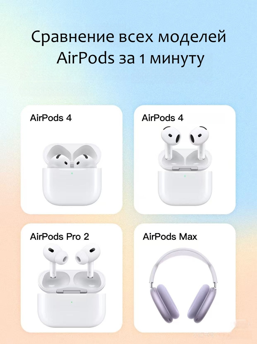 Семейство AirPods продолжает расширяться. Вы уже запутались, выбирая между обычными 4-го поколения, 4-го поколения с шумоподавлением, Pro 2-го поколения или невероятно дорогими Max? 🤯 Как аудиоэнтузиаст, испробовавший стандартные версии, Pro и Max, я здесь, чтобы всё вам разъяснить. После прочтения вы точно будете знать, какая модель вам подходит лучше всего! 💰 Тратьте деньги с умом! Итоги и рекомендации по покупке: Нет лучшего варианта — есть только тот, что подходит именно вам! Подумайте внимательно, что для вас важнее всего (комфорт? шумоподавление? качество звука? цена?), прежде чем принимать решение!