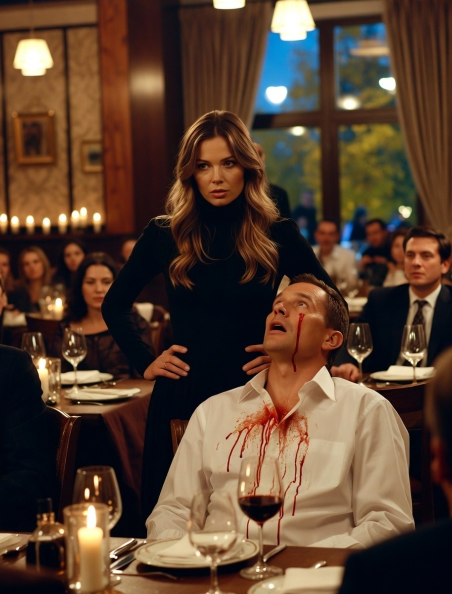 Виктор, в отчаянии, встал и попытался увести её. "Пойдём домой, обсудим". Но Анжела оттолкнула его: "Домой? К твоим лживым глазам? Нет!" Она схватила бокал с вином и выплеснула ему в лицо. Красное вино стекало по его рубашке, как кровь. Ресторан ахнул. Кто-то заснял на телефон. Виктор, мокрый и униженный, вытер лицо: "Анжела, ты с ума сошла!"