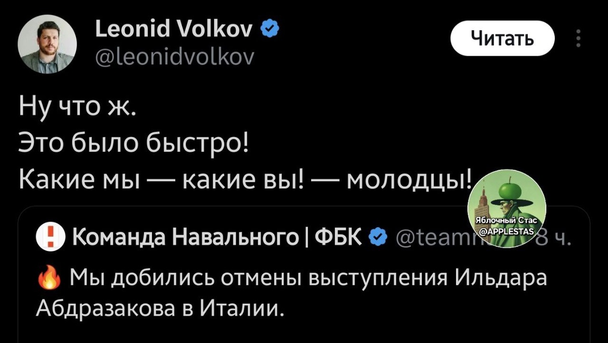 Колоссальный удар по режиму. Даже похлеще, чем покупка Серегой Тихановским (кстати, где он?) умных часов и наушников. В Кремле паника и уныние. Яблочный Стас