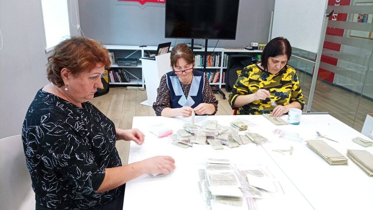 ✂В Центральной городской библиотеке им. А.П. Чехова продолжаются мастер-классы по изготовлению сухих душей для участников СВО.