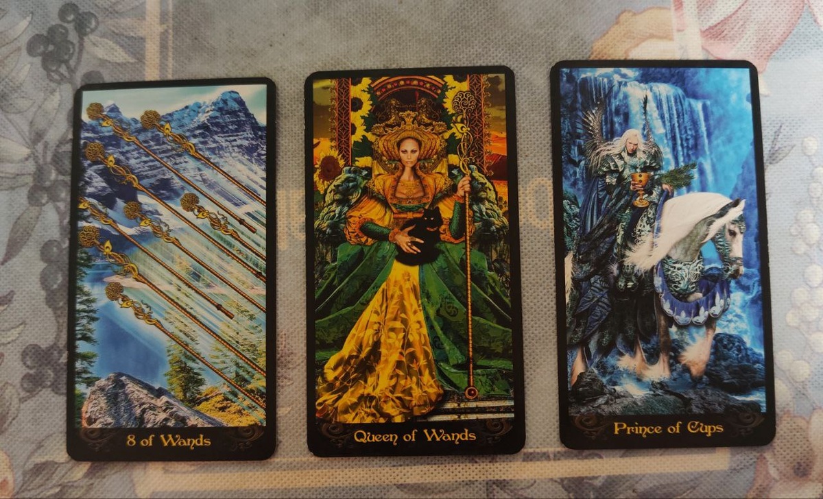 ✨ Сегодня я хочу поделиться с вами увлекательным раскладом, который включает три мощных аркана из колоды Таро Иллюминатов: Восьмёрка Жезлов