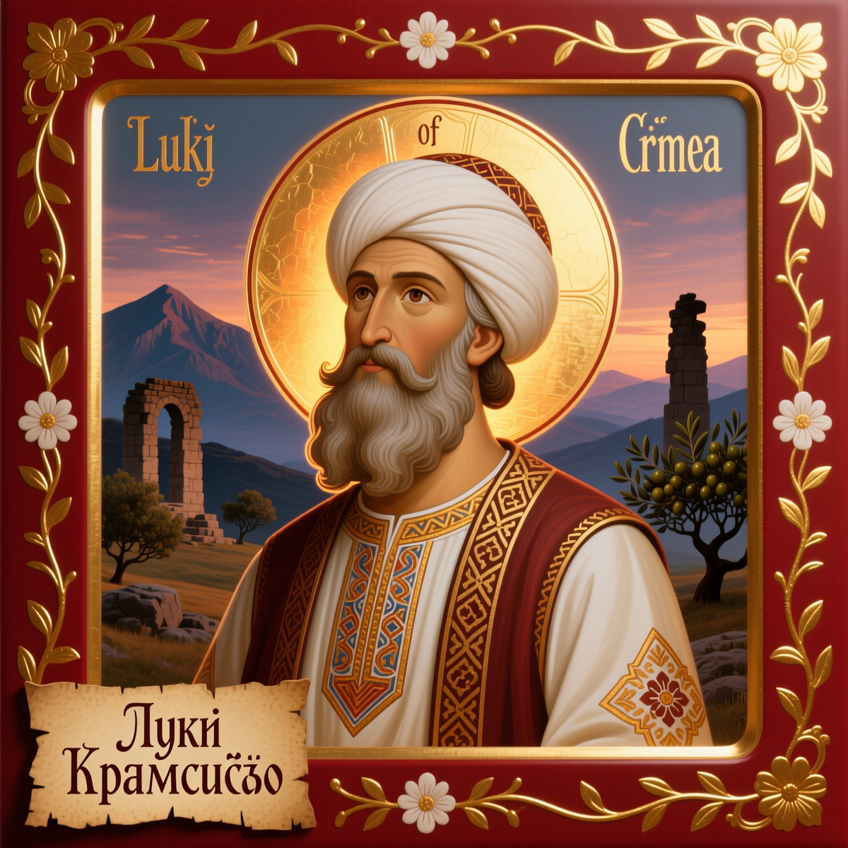 Обзор иконы святого архиепископа Луки (Войно-Ясенецкого) Крымского** **Краткая биография святого** Святой Лука (в миру Владимир Фёдорович Войно-Ясенецкий; 1877–1961) — выдающийся деятель XX века, сочетавший подвиг врачевания тела и души. Будучи блестящим хирургом-онкологом, он стал архиепископом Симферопольским и Крымским, несмотря на гонения советской власти. В 1961 г. он скончался, а в 1964 г. был канонизирован Русской Православной Церковью. Его подвиг — служение Богу через медицину: даже в ссылке и тюрьме он продолжал оперировать и писать труды по хирургии (например, «Очерки гнойной хирургии»). Святой Лука почитается как **покровитель врачей, хирургов и всех, кто страдает от болезней**. --- **Описание иконографии** Икона святого Луки Крымского имеет узнаваемые атрибуты, отражающие его двойное призвание — **иерарха Церкви и учёного-врача**: - **Одежда**: Святой изображён в **епископских облачениях** — белом или золотом скуфье (шапочке), фелоне (ризе) и омофоре (знаке архиерейского до