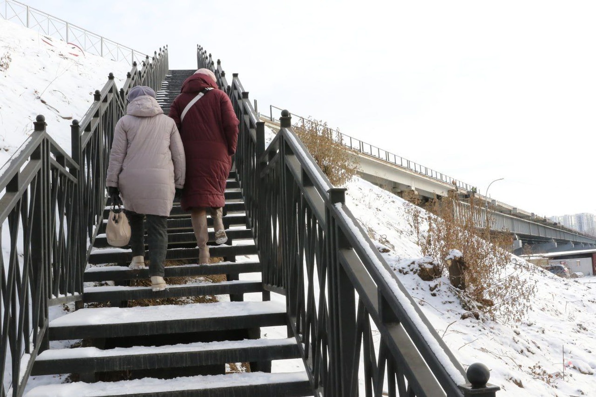 На Кузбасском мосту завершается строительство лестницы к школе №60