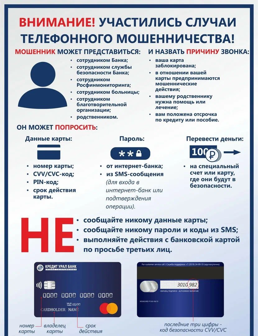 ‼️Уважаемые жители‼️ ☝️Участились случаи телефонного мошенничества! 👉Чтобы избежать встречи со злоумышленниками, следуйте несложным правилам. Оградить себя от подобного рода преступлений предельно просто. Прежде всего, необходимо быть благоразумным и не паниковать. ‼️Будьте бдительны‼️ Не забывайте, что никто лучше вас самих не сможет позаботиться о сохранности той личной информации, которой вы не хотите делиться с общественностью. ‼️Не дайте себя обмануть‼️ рубрика #внимание_опасно