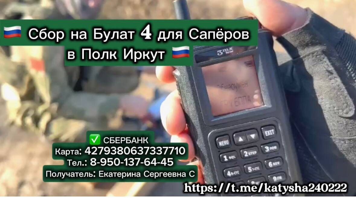 Дорогие друзья! Объявляем сегодня «День стольника»! По 100 рублей и мы быстрее закроем заявку 🙏 Что для нас 100 рублей? А для бойцов возможность выжить и вернуться домой к семье! Реквизиты для сбора на дрондетектор: ✅ Тел для связи/перевода 89501376445 Екатерина ( Сбер) ✅ Карта Сбер 4279380637337710 Екатерина С.