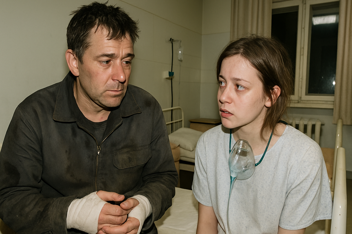 Потом они разрешили мне зайти к ней. Настя лежала с кислородной маской, бледная, с покрасневшими глазами. Когда я вошёл, она приподнялась на локтях.