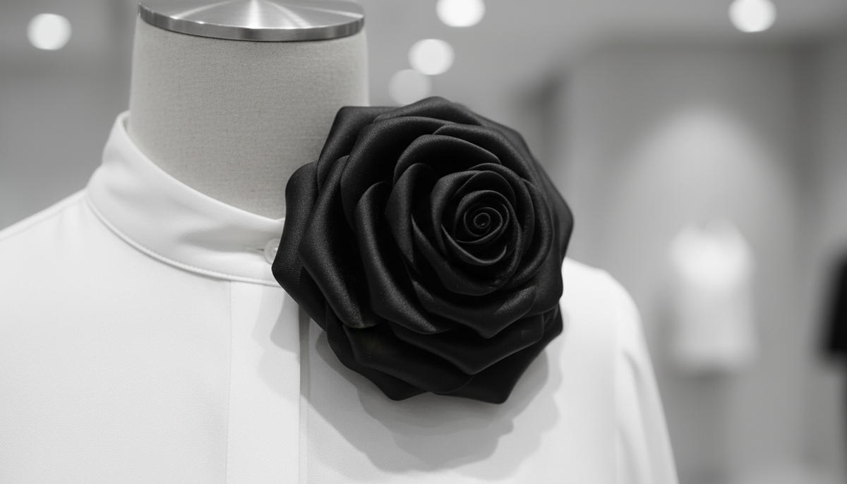 Самые элегантные розетки - монохромные. Черный, белый, графитовый или глубокий шоколадный. Если вы выбираете яркий цвет (например, фуксию или шартрез), следите, чтобы он был единственным ярким пятном в образе. Монохромность помогает цветку выглядеть более скульптурно, а не «нарядно» в плохом смысле слова.