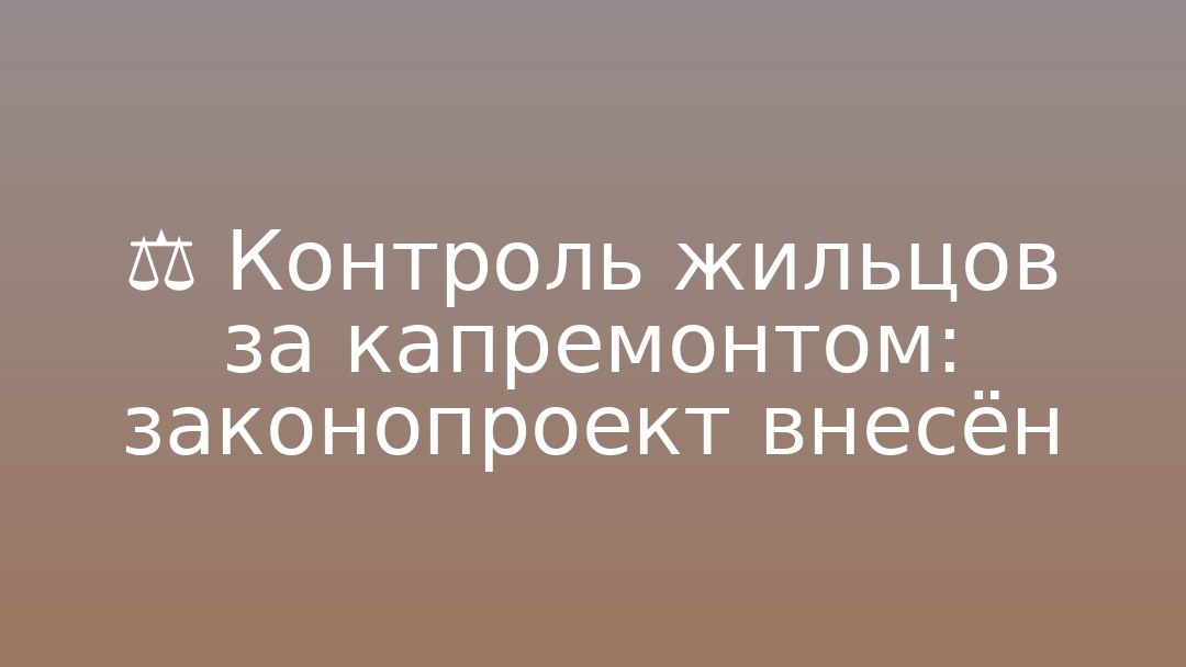 В Госдуму внесён законопроект о создании комиссий собственников для общественного контроля капитального ремонта общего имущества в многоквартирных домах. Комиссия, избираемая общим собранием, получает право: - проверять соответствие работ проектной и сметной документации; - контролировать качество применяемых материалов и соблюдение сроков; - участвовать в промежуточной и итоговой приёмке работ; - подписывать акты приёмки от имени всех собственников (без акта подрядчик не сможет получить оплату). Подрядчики обязаны обеспечивать комиссии доступ на объект, органы местного самоуправления — информировать собственников о решении о капремонте и о необходимости создать комиссию не позднее месяца со дня его утверждения.