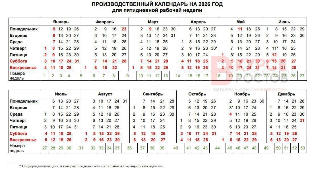 ⚡️ Производственный календарь на 2026 год утвержден Правительством