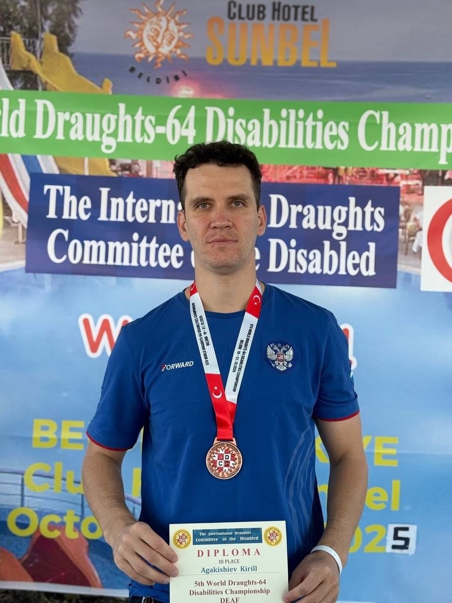 Белгородец завоевал бронзу на чемпионате мира по шашкам 🙌🏻 Турнир проходил в турецком Бельдиби. Он собрал более 150 сильнейших шашистов из восьми стран! Кандидат в мастера спорта, воспитанник центра адаптивных видов спорта «Вершина» Кирилл Агакишиев стал бронзовым призёром чемпионата среди людей с ограниченными возможностями здоровья. 💬 «Эта медаль — результат упорного труда Кирилла и высокого мастерства его наставника, Виталия Грицаева. Поздравляем с выдающимся успехом!» — отметили специалисты министерства спорта Белгородской области. Как вам такие новости? ❤️ — круто! Молодец! 👍 — звучит очень здорово) Удачи чемпиону! Источник: Министерство спорта Белгородской области #талантливыебелгородцы Не забудьте подписаться на наш канал❤️