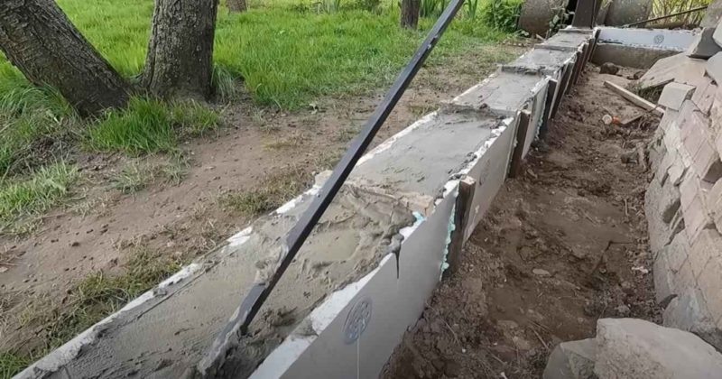 Устройство ленточного фундамента — один из самых затратных процессов, причем как по времени, так и по финансам. 👉 Если бюджет ограничен, и нужно сэкономить по максимуму (да и еще, чтобы отходов не было), можно залить ленточный фундамент, используя для этого несъемную опалубку из пенополистирола. У несъемной опалубки из пенополистирола есть два существенных плюса: во-первых, сам материал выступает в качестве утеплителя; во-вторых, является еще и гидроизоляцией, поскольку пенополистирол не пропускает влагу. Первым делом необходимо будет нарезать листы экструдированного пенополистирола на полосы требуемой ширины. Толщина материала — 30 мм. Обязательно нужно натянуть строительный шнур, чтобы все полосы пенополистирола были установлены на одинаковой высоте. Можно поступить и иначе. 👉 Например, отрезать сначала полосы с небольшим запасом, а после завершения монтажа обрезать при помощи канцелярского ножа верхнюю часть, используя в качестве направляющей ровную деревянную рейку. Приклеиваем