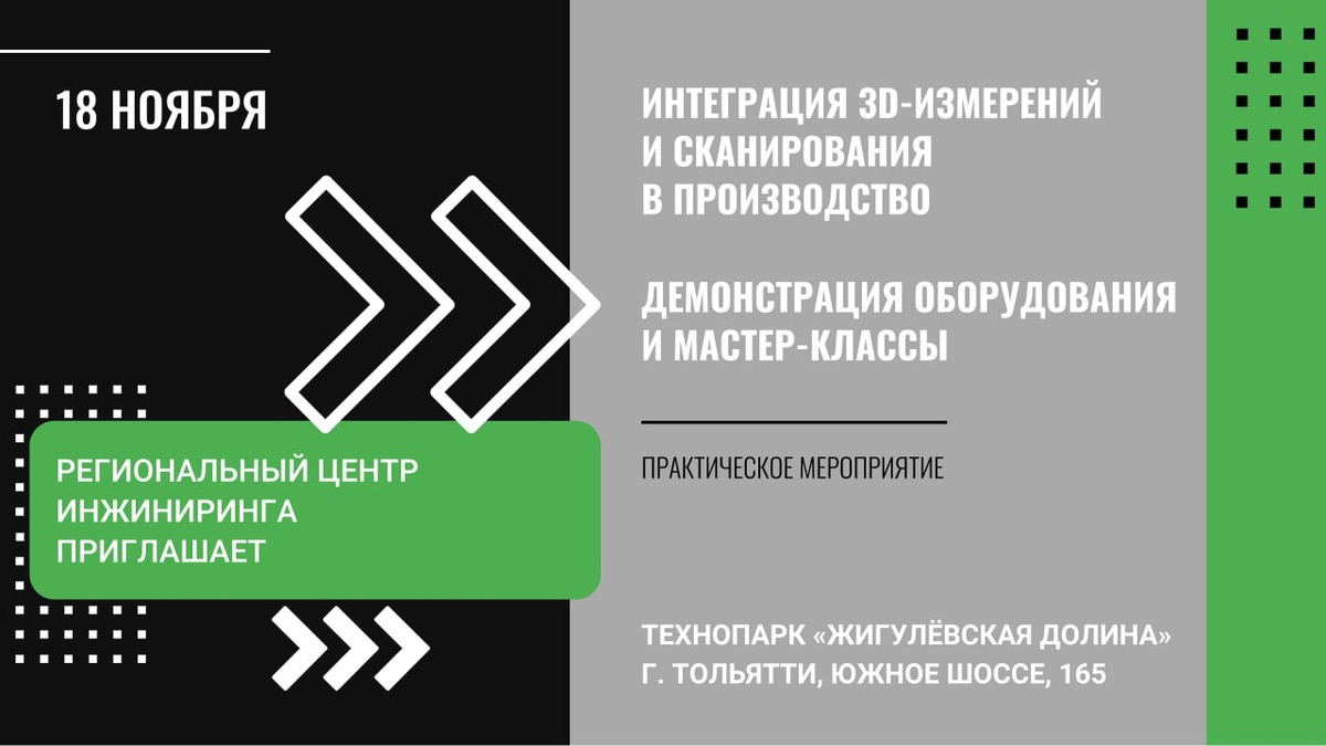 ❗️Региональный центр инжиниринга в «Жигулёвской долине» приглашает на практическое мероприятие, посвященное современным технологиям 3D-измерений и сканирования и их внедрению в производственные процессы. ➡️ 18 ноября 2025 г. в технопарке: ✅ Демонстрация новинок оборудования 2025 года: 🔹мобильная КИМ PMT GAMMA+ серия P с лазерным сканером; 🔹высокоточная система 3D-сканирования ScanLine StaticScan Q12; 🔹профессиональный 3D-сканер Exametra Scanix; 🔹и не только. ✅ Мастер-классы от ведущих специалистов по применению технологий контроля качества и обратного проектирования. ✅ Обсуждение практических кейсов внедрения оборудования. Приглашаем промышленные, научные и инжиниринговые предприятия! Участие бесплатное, требуется предварительная регистрация Соорганизатор: ООО «КВАЛИВЭД» (г. Санкт-Петербург) ➡️Где: г. Тольятти, Южное шоссе, 165, технопарк «Жигулёвская долина», 2 этаж главного корпуса (выставочный зал). ➡️Когда: 18 ноября 2025 года, с 10:00 до 16:30 Планируемая программа мер