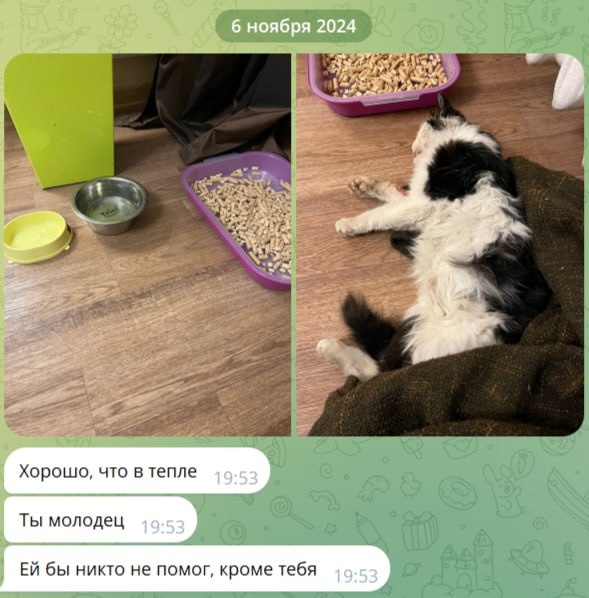 Ну, что, друзья! Поздравляем все дружно Лизоньку. Вчера был ровно год, как она встретилась на моем пути. Изломанная челюсть, перебитая лапа... Но такая нежность, такая потребность в человеке, такое желание просто жить! Для тех, кто со мной недавно, поясню - мою третью кошку, кляксу Лизоньку, нашла под дверью офиса 6 ноября 2024 года в крайне не хорошем состоянии. Никаких больше кошек брать домой не планировала, но в кабинете просто не смогла нормально работать. Слезы лились ручьем. Было понятно, что на улице кошка не жилец. Открытая ра на, холод, грязь. Решила, надо как-то забирать кошку с улицы, а потом уже решать все остальное. До окончания рабочего дня Лизоньку (тогда просто не известную мне абсолютно чужую кошку) посадили с коллегами в коробку. Периодически бегала на улицу смотреть, чтобы кошка не ушла. Но Лиза вот как-то поняла, что ей надо обязательно дождаться. И тогда все в её жизни будет иначе. Она ещё на окно запрыгнула и лапкой в офис стучалась. Вот как просила о помощи, б