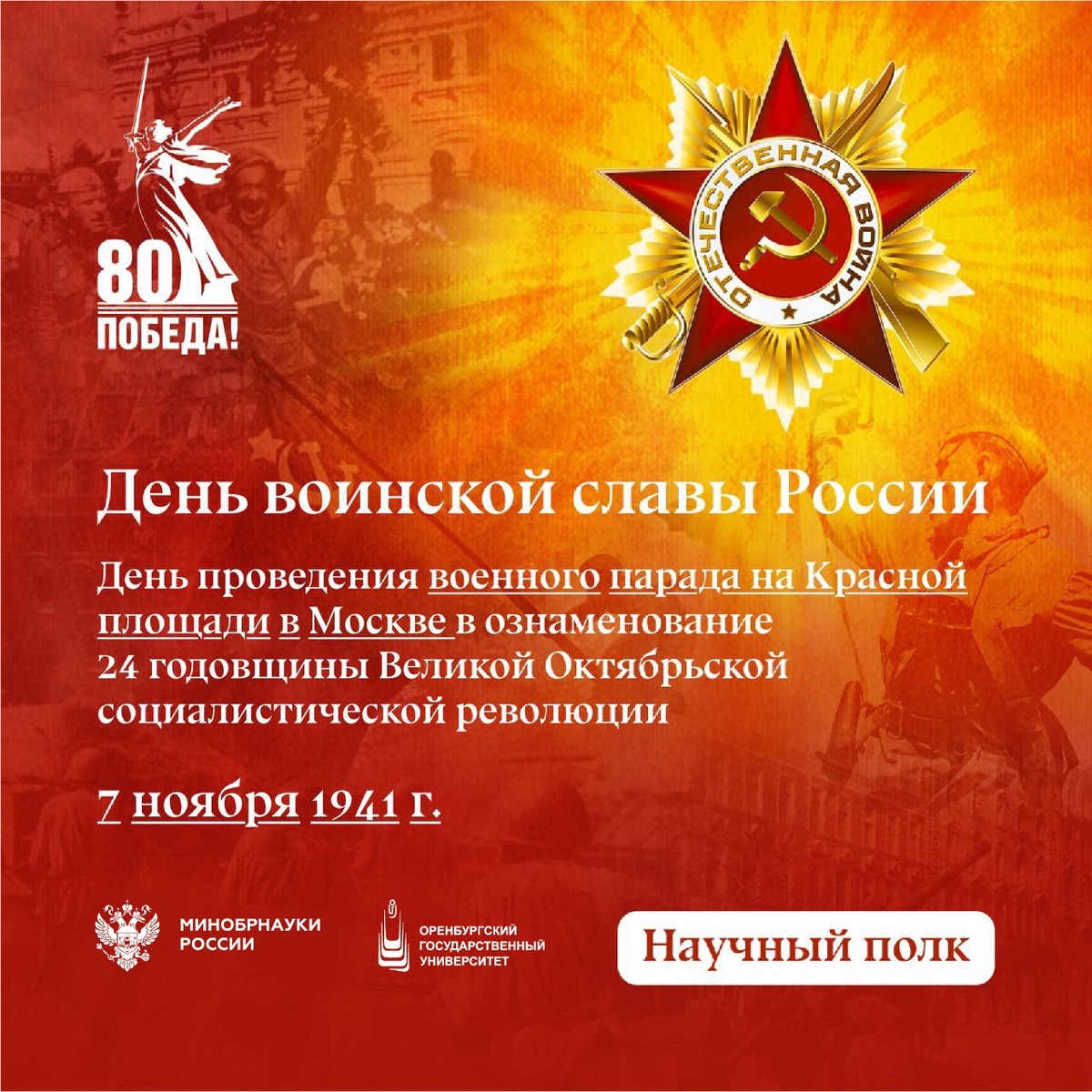 Память о параде, который предрек победу 🌟 В этот день, 7 ноября 1941 года, когда линия фронта проходила всего в нескольких десятках километров от столицы, на Красной площади состоялся военный парад в честь 24-й годовщины Великой Октябрьской социалистической революции. Это был не просто смотр войск — это был акт беспримерного мужества и уверенности в победе. Почему этот парад стал легендой? В параде участвовало 69 батальонов пехоты, 6 сабельных и 1 тачаночный эскадроны, 5 моторизованных батальонов, 16 тачанок, 296 пулемётов, 18 миномётов, 12 зенитных пулемётов, 140 артиллерийских орудий и 160 танков. После завершения шествия многие бойцы сразу же уходили на фронт. Это показало всему миру, что дух нашей армии и народа не сломлен. Этот день — напоминание о стойкости, единстве и невероятной силе духа нашего народа в самые тяжелые времена. Вечная слава героям, отстоявшим нашу Родину! 🕊 #ОГУ #в_ОГУ #OSU #НаучныйПолк #НаучныйПолк2025 #80летПобеды