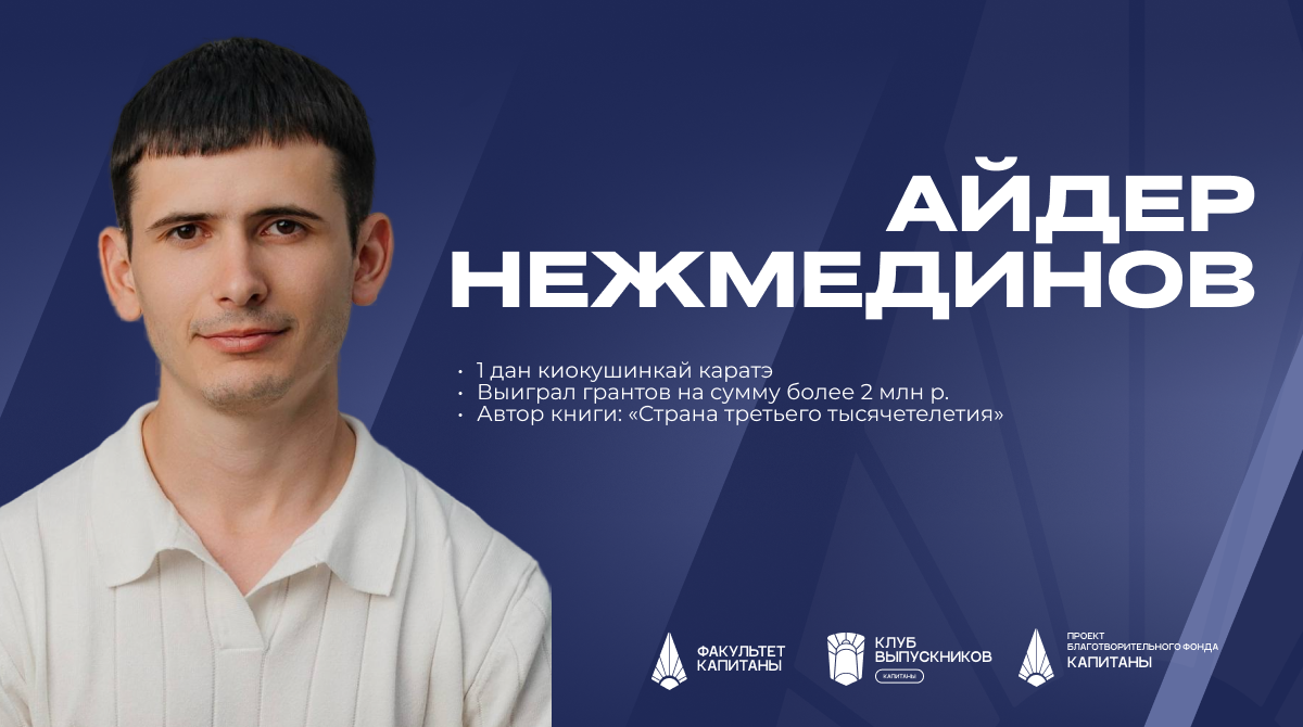 В интервью выпускник факультета «КАПИТАНЫ» Айдер Нежмединов делится целостной, многогранной историей личного и профессионального роста, выстроенной вокруг нескольких ключевых тем: текущий этап жизни и проекты, путь в предпринимательстве и общественной деятельности, роль наставничества и о истории целостности.
