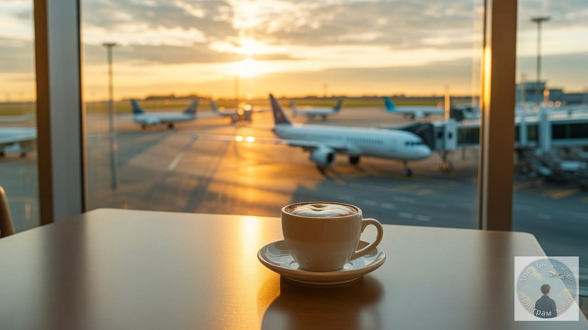 🟢Кофе, рассвет и новые направления✈️ Вдохните этот момент: на балконе кофейни парит чашка свежего кофе, а за стеклом аэропорт медленно оживает в первых солнечных лучах ☕️🌇✈️. Пусть день начнётся с теплоты, уюта и настроя на большие путешествия — всё возможно на взлёте утра! P.S. Забирайте картинку на рабочий стол Если было интересно - 🔥 ✅ Мне бы в небо 👍 ПРОГОЛОСОВАТЬ ЗА КАНАЛ