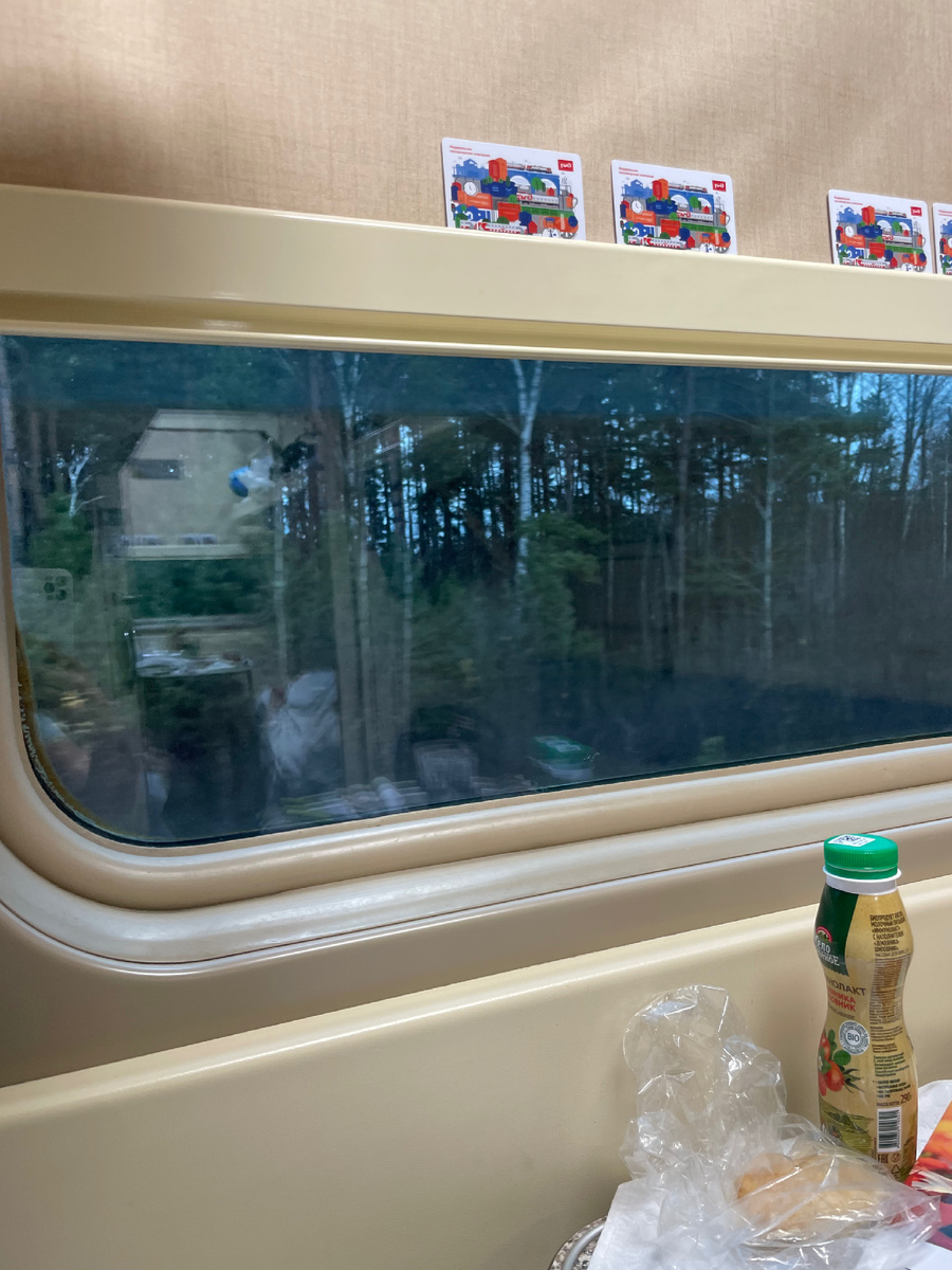 Проснулась под стук колёс — мы уже близко к Москве! В поезде, конечно, не так комфортно спать, как в родной кровати, но сегодня у нас почти домашний уют: в купе только я и дочка.