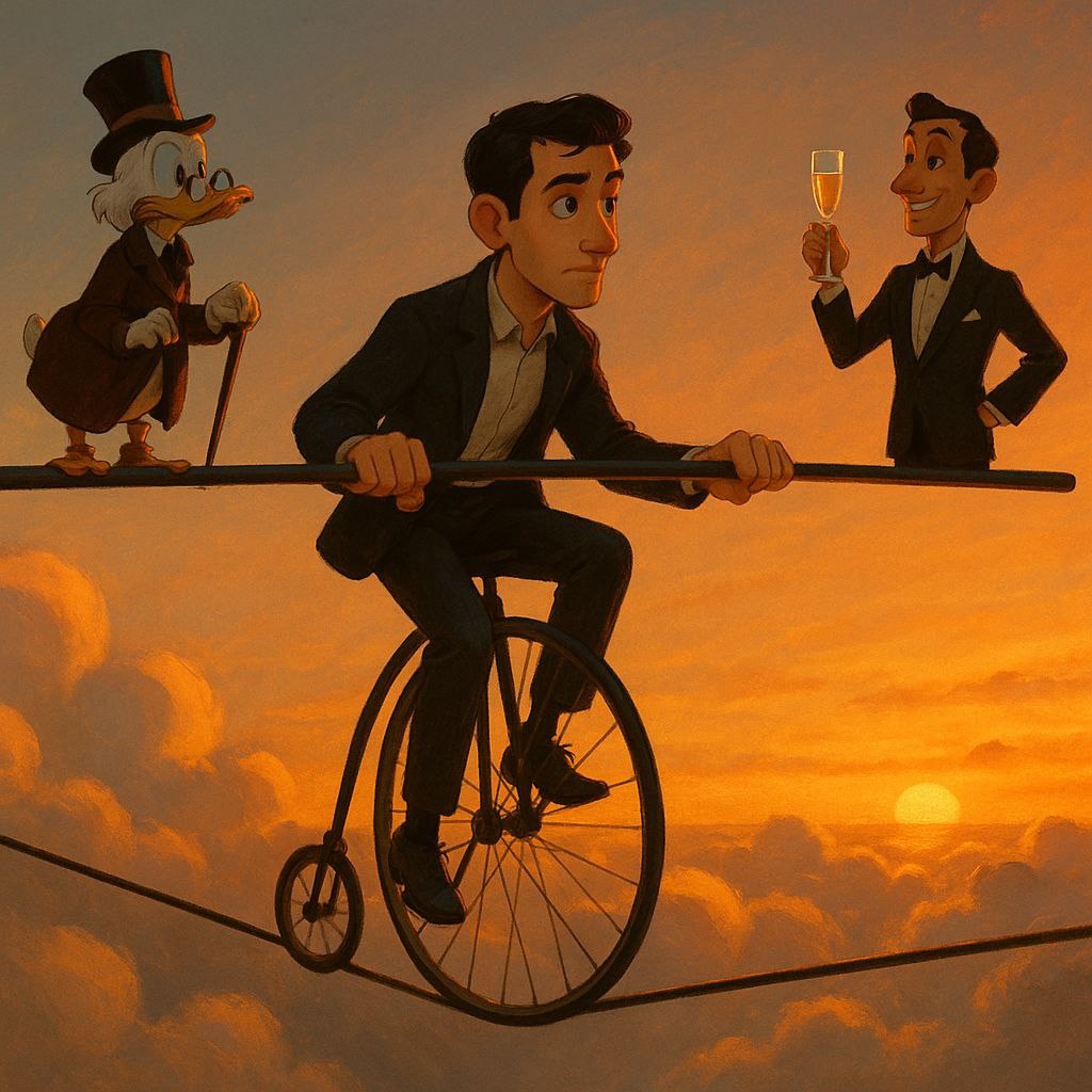 Пару месяцев назад я сделал сегментацию, как люди относятся к деньгам. По моим наблюдениям, два самых непримиримых типа — Великий Гэтсби и Скрудж Макдак. Вы наверняка встречали их представителей в инвестчатах. Первые уверены, что копить бессмысленно. Всё равно инфляция всё сожрёт, власти отберут, или кирпич на голову упадёт — и ради чего тогда были все эти лишения? Зачем думать о будущем, если можно жить как в последний раз: сегодня пляшем, а завтра — хоть потоп. У вторых перед глазами есть примеры, к чему приводит жизнь бабочки-однодневки. И они бросаются в другую крайность. Отказывают себе во всём ради «светлого завтра». Ходят на ненавистную работу, выгадывают каждую копейку, выбирают между йогуртом по акции и сосисками с красным ценником. А сэкономленное тяжким трудом — либо хранят в долларах под матрасом, либо закапывают в бетон. Потому что в другие способы сбережений не верят. А потерять накопленное — их самый большой страх. Эти два лагеря в вечной конфронтации. С пеной у рта
