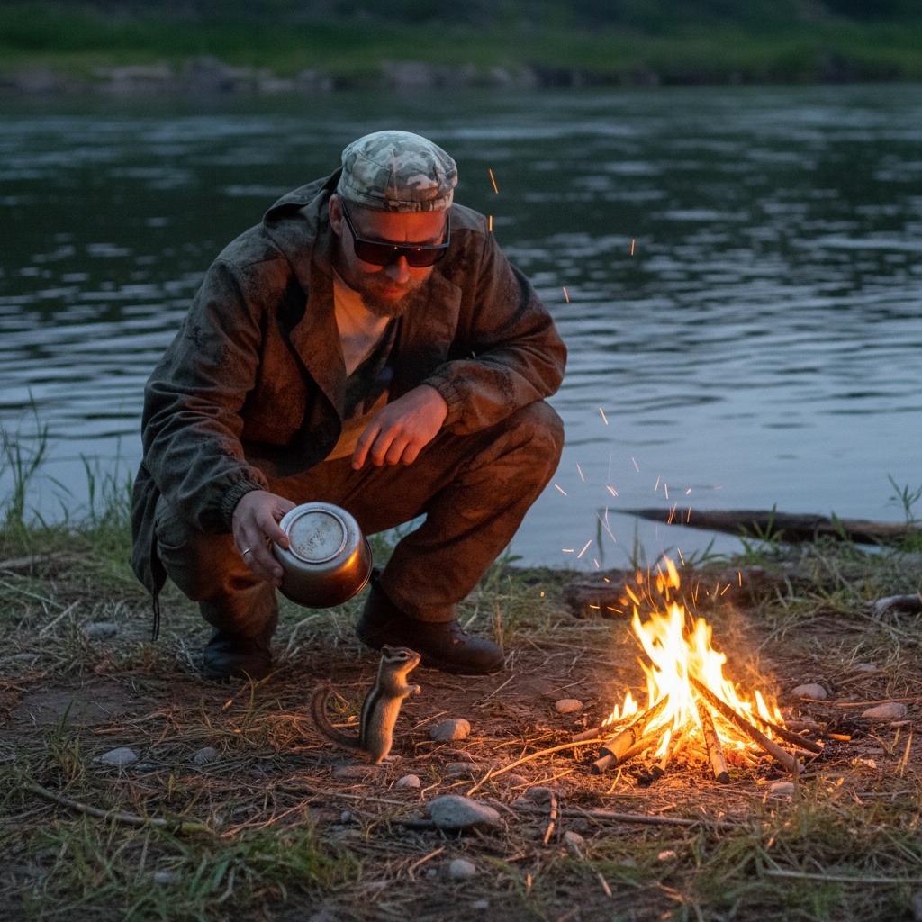 Только приехали на Вымь, разгрузили вещи. Планировали ночевать у костра, а утром — на рыбалку. Сварили доширак( что бывает очень редко), чуть согрелись коньячком, болтали о чём-то своём. И тут — словно из ниоткуда — появился бурундук. Не просто пробежал мимо, а встал в метре от нас на задние лапки и смотрит — умными глазками-бусинками, без страха, с любопытством. Угостили его х