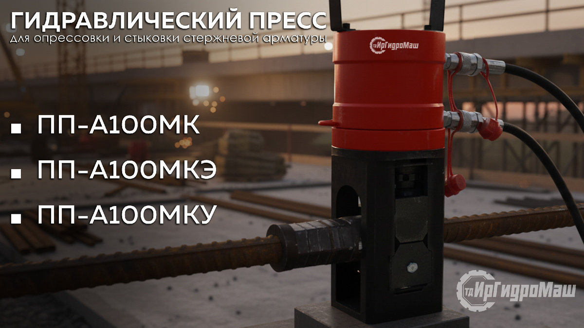 Пресс ППА-100М предназначен для выполнения соединений стержневой арматуры периодического профиля диаметром (16, 18, 20, 22, 25, 28, 32, 36, 40) мм и входит в линейку подобных прессов ООО «ТД ИГМ». Отличие модели ППА-100М от предыдущих моделей ППА-100С, ППА-100СК, ППА- 100СУ заключается в улучшении конструкции с учетом опыта эксплуатации предыдущих моделей. 1. Новые уплотнения RGC: введены улучшенные уплотнения с высокой износостойкостью, повышенным ресурсом и адаптацией к тяжелым условиям (загрязненная среда, температуры от -50°C до +110°C). Обеспечивают герметичность и скольжение при высоком давлении благодаря комбинированной конструкции из материалов (фторопласт, маслобензостойкая резина, фтористая резина, полиамид с углеволокном и др.). 2. Улучшение узла крепления верхней матрицы: удобный доступ для замены в рабочей зоне и технологичность для производства, с учетом пожеланий клиентов на основе эксплуатационных данных. 3. Предотвращение поворота штока: конструктивные изменения исклю