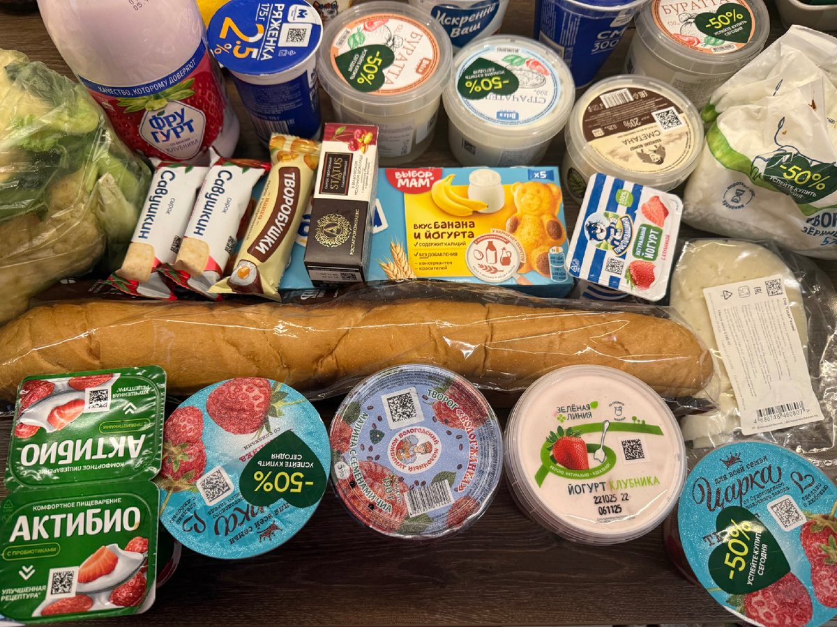 В четверг я традиционно в обед заскочила в Перекресток в надежде попасть на выкатывание корзин со скидочными товарами. Но к торжественному выносу тела выкатыванию тележек я слегка опоздала, поэтому пришлось ограничиться скромными остатками. Осталась молочка, но в единичных экземплярах (2 творога, 2 страчателлы, 1 буррата, йогурты в ассортименте, ряженка, сметана и прочее, что есть на фото. Что-то из йогуртов стоит в два уровня. Осталась пачка Барни, взяла младшему студенту в дорогу - в субботу у него запланирована поездка в Ярославль вместе с друзьями; плюс багет и цветная капуста, она вообще досталась мне за смешные деньги - чуть больше 150 рублей за весь кочан весом в 1,5 кг. В общем, я и езжу туда ради овощей и фруктов на скидках. Еще немного молочки, 3,5 килограмма винограда, грибы, лимоны (щас думаю, нужно было все забрать, я бы сделала бы из них варенье), помидоры, почти 3 кило. Виноград очень любит младший студент, собственно,для него и беру. Половину грибов сразу же пригото