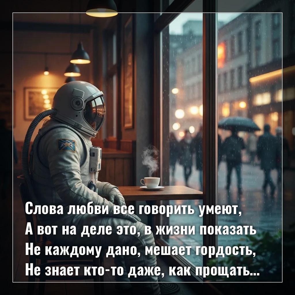 Слова любви все говорить умеют, А вот на деле это, в жизни показать Не каждому дано, мешает гордость, Не знает кто-то даже, как прощать, Не могу удержать в узде эмоции, Словами ранят, даже не заметив, Ошибки осознайте, жизнь - уроки Души в земном университете, Не бойтесь извиниться, быть мудрее, Не повторять ошибки важно очень, Раз осознали, что были не правы, Не ставьте между вами многоточий, Прислушайтесь, а что вам шепчет сердце? Задумайтесь, что ранило другого? Ведь не бывает в жизни просто так К вам отношения «плохого», Мы ищем виноватых тут и там, А на себя не смотрим никогда, Поступки, что в эмоциях вершим, Кидаем как легко слова, Которые потом ведь, как ножи, В Душе близкого друга застревают, В обиду уходить ты не спеши, Любовь в сердцах людей пусть прорастает.