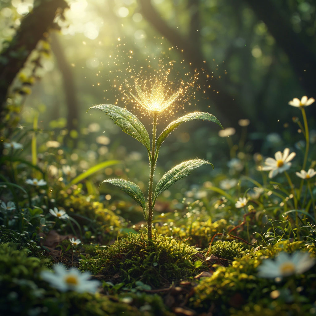 В одном далёком королевстве, за густыми лесами и высокими горами, жила девочка по имени Лиза. Она была доброй и отзывчивой, но очень неуверенной в себе. Лиза считала, что у неё ничего не получается так хорошо, как у других: рисовала она «некрасиво», пела «немелодично», а в играх всегда была последней. Каждое утро Лиза выходила на крыльцо своего дома и смотрела на огромный дуб во дворе. Он казался ей воплощением силы и мудрости — такой высокий, раскидистый, с корой, испещрённой тайными знаками времени. — Почему я не могу быть такой же уверенной, как этот дуб? — вздыхала Лиза. Однажды утром у корней дуба она обнаружила маленькое семечко необычного золотистого цвета. Оно переливалось на солнце, будто было сделано из тончайшего металла. Лиза осторожно подняла его и решила посадить в своём маленьком садике. — Может, из него вырастет что‑то прекрасное, — подумала она. Девочка вырыла небольшую ямку, положила семечко, присыпала землёй и полила водой из лейки. Каждый день она ухаживала за мест