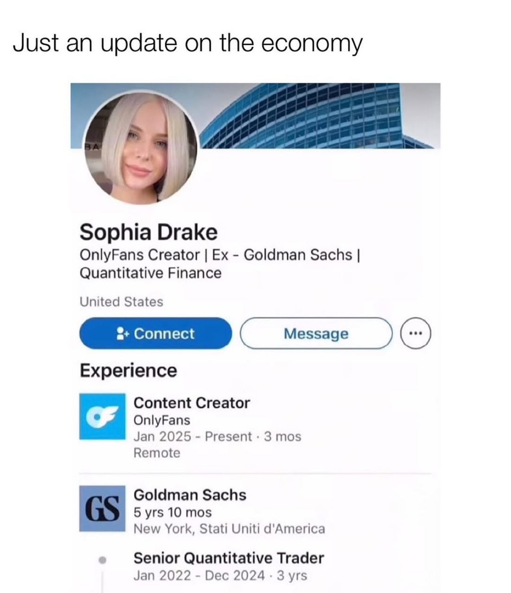 Из Goldman Sachs в OnlyFans🫣 Конкретный скрин, скорее всего, шутка, но тех, кого всё достало и они решились кардинально сменить сферу, на самом деле много. Но я за тот подход, где вы не закапываете свой опыт и начинаете где-то с 0, а перепридумываете свою карьеру. Потому что чаще всего вам не нужно “сжигать мосты”. Вам нужно переупаковать свой опыт — так, чтобы он работал на вас в новой сфере, чтобы вы не теряли годы и доход, а делали шаг вперёд. Если вы 10 лет работали в бухгалтерии, значит, у вас сильная аналитика, внимательность, системное мышление. Это базис, на котором можно строить карьеру в аналитике, проджект менеджменте, финансах. Если вы пришли из инженерии, у вас уже есть логика, структура, управление процессами. Посмотреть на себя другим взглядом и продать это компании, переупаковаться, и пройти все этапы отбора в новую профессию, мы помогаем на Карьерном REstarte, индивидуально разбирая каждый кейс. ЗАПОЛНИТЬ АНКЕТУ Например, у нас на курсе мы организовывали такие