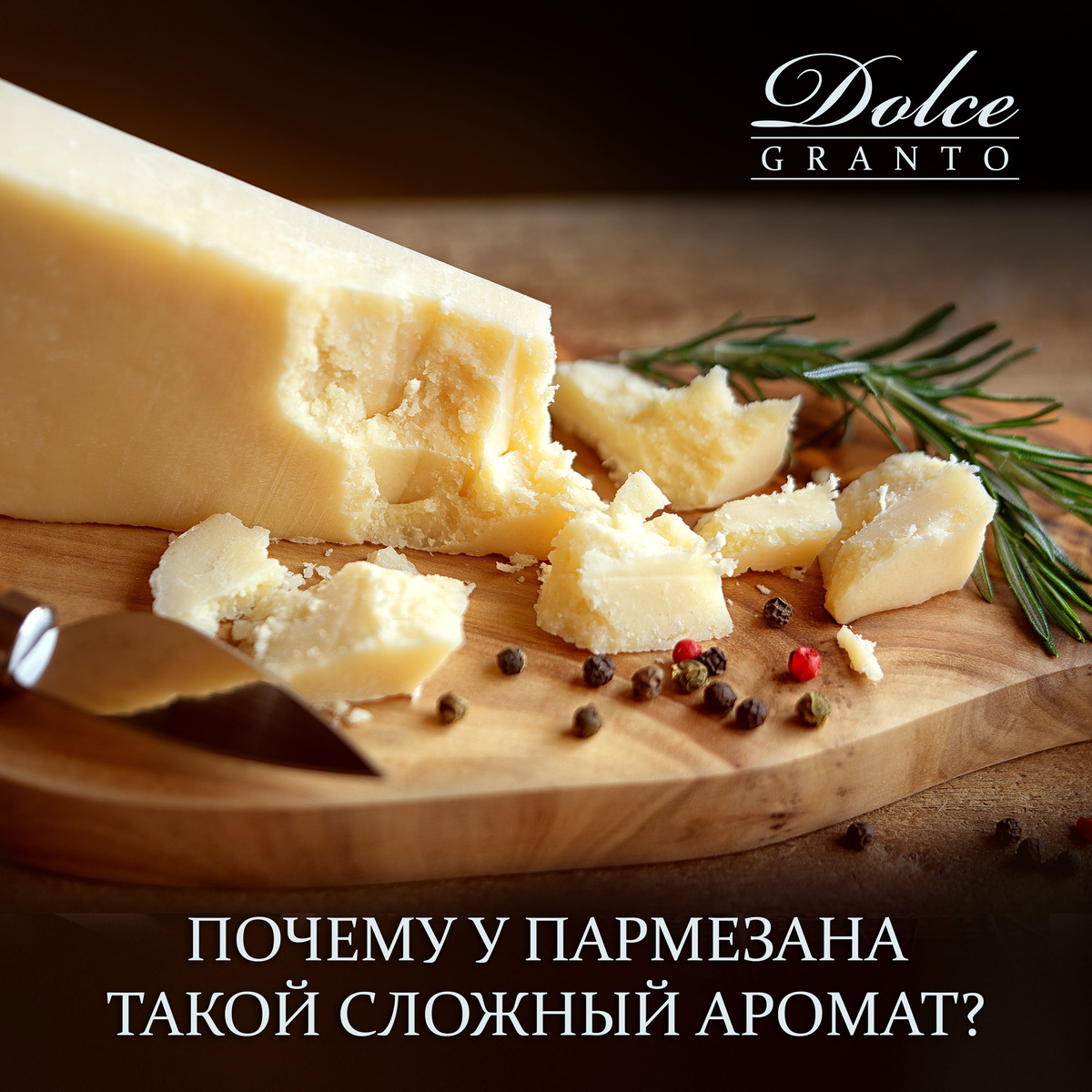 Почему он такой особенный? Почему достаточно маленького кусочка, чтобы кухня наполнилась этим «итальянским духом»? Разберемся, из чего складывается этот сложный и невероятно красивый аромат Dolce Granto. У настоящего пармезана — молоко только от коров, которых кормят травой и сеном. В этом и секрет: аромат молока напрямую влияет на вкус сыра. В молоке есть десятки природных ароматических соединений, которые потом «просыпаются» в процессе выдержки. Пармезан не зря называют «живым сыром» — он буквально дышит во время созревания. Микроскопические процессы внутри головки идут медленно, месяц за месяцем меняя аромат. Каждая стадия — как новый аккорд в музыкальном произведении. Настоящий пармезан не нуждается в ароматизаторах или добавках. Его аромат рождается из природы и терпения. Фермент