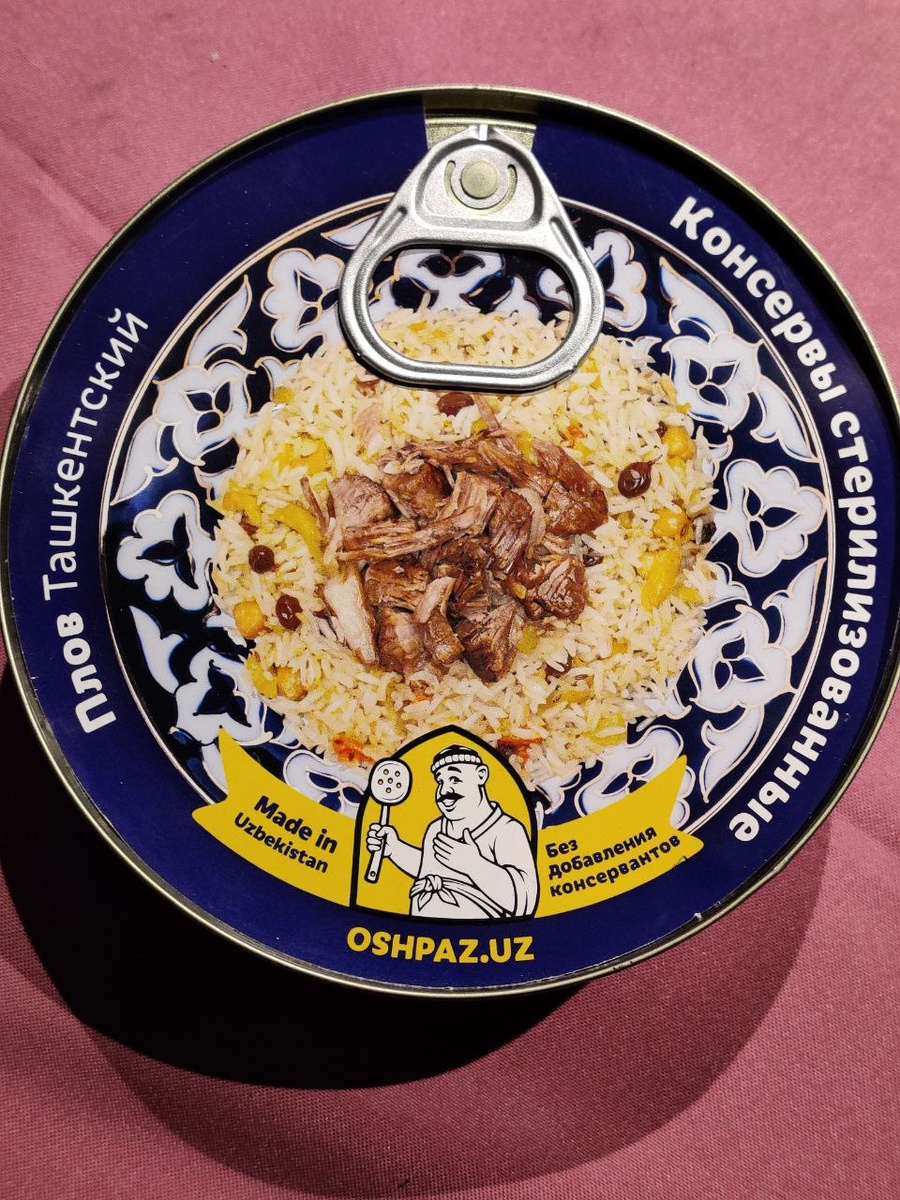 Лучший подарок, который только можно привезти из путешествия в Узбекистан, - настоящий плов. Ташкентский, например, выпускают вот в таких банках. Советуют разогревать прямо в них в горячей воде, открывать и подавать, говорят, вкус как только что из казана. Килограммовая стоит что-то около 600₽. @foodiscovery