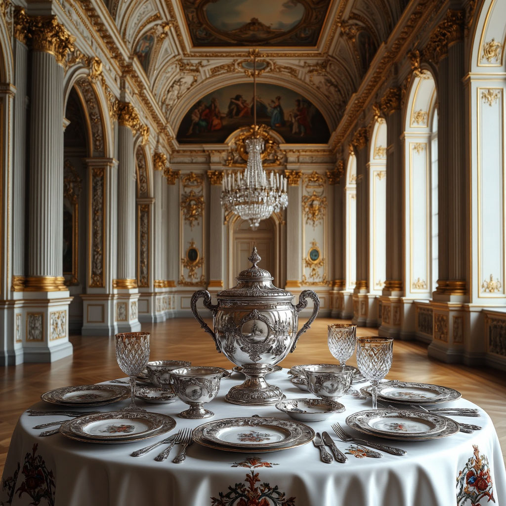 Столы накрывались скатертями из льна, блюда подавались в серебряных подносах, слуги меняли тарелки после каждого блюда.