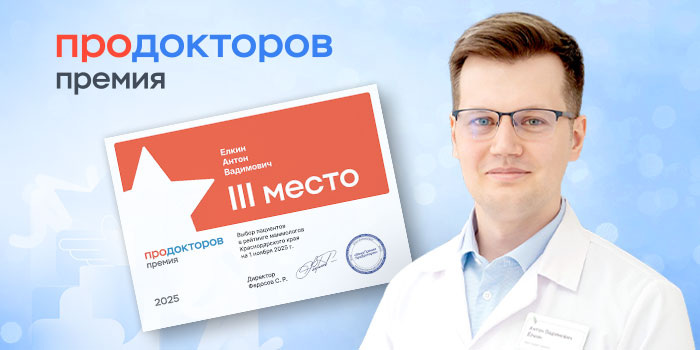Ежегодно портал «ПроДокторов», который является одним из самых популярных онлайн-ресурсов, публикующих отзывы пациентов о врачах, награждает лучших специалистов и клиники. 🏅Победители определяются согласно народному рейтингу, который формируется на основе объективных оценок, мнений и впечатлений пациентов, собственноручно написанных ими на портале, а также комментариев, оставленных по результатам обзвона сотрудниками колл-центра «ПроДокторов» пациентов после их визита в медучреждение. 🏆 Специалисты Федеральной сети клиник экспертной онкологии «Евроонко», которая является признанным центром компетенций в диагностике и лечении злокачественных новообразований, из года в год неизменно занимают места на пьедестале почета «ПроДокторов». Очередное голосование проходило с 1 ноября 2024 года по 31 октября 2025 года, и по его результатам врач-онколог, заведующий дневным стационаром клиники «Евроонко» в Краснодаре Антон Ёлкин стал третьим среди лучших маммологов Краснодарского края. 💐 Мы от вс