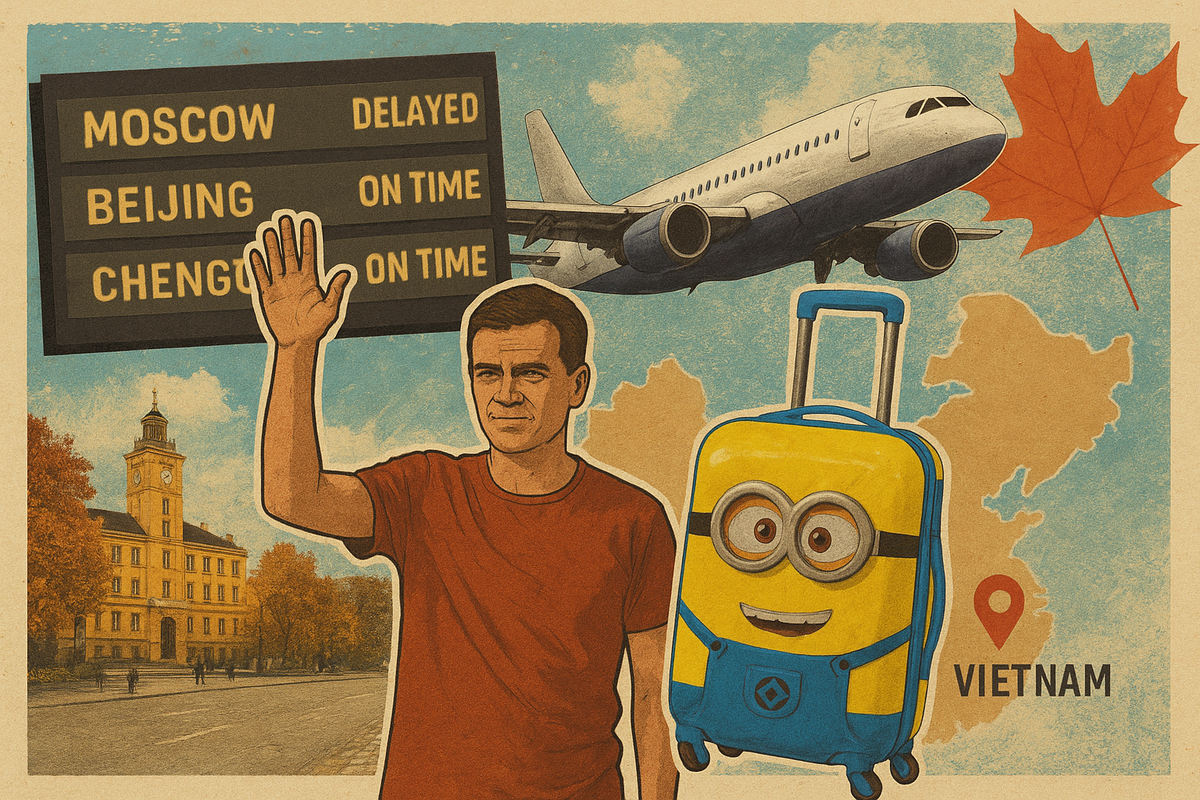 Часть денег перевели в евро, часть оставили в рублях, ещё немного спрятали в юанях. На всякий случай. Потому что кто знает, где именно судьба решит устроить нам пересадку. Выбор маршрута был чистой арифметикой безумцев: Москва — Пекин — Чэнду — Нячанг.