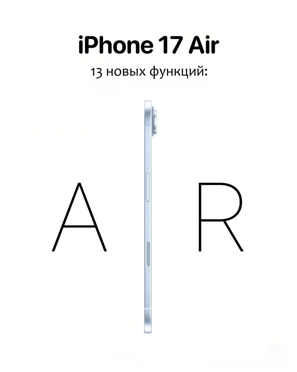 📱 iPhone 17 Air, ставший полной заменой линейки iPhone Plus, является самым тонким и легким iPhone в истории. Как исследователь и новатор в серии iPhone, в нем можно четко разглядеть черты экспериментальных и инновационных функций. Другими словами, позиционирование iPhone 17 Air изначально не заключается в том, чтобы быть практичным продуктом «и то, и это, и еще вот это». Его цель — отказаться от множества функций, чтобы проводить больше передовых экспериментов в областях персонализации и инноваций! Сегодня мы подготовили для вас свежий сводный обзор новых функций и конфигураций iPhone 17 Air, и в нем есть много приятных сюрпризов! 1️⃣ Толщина корпуса всего 5.5 мм — это его главная особенность и причина, по которой он носит имя Air. Он такой большой и тонкий — держать его в руке действительно невероятно. Обязательно попробуйте его, когда он появится в магазинах! 2️⃣ Экран 6.6 дюймов — почти как у Plus. 3️⃣ Адаптивная частота обновления 120 Гц — iPhone наконец-то это получил! 4️⃣ Ч