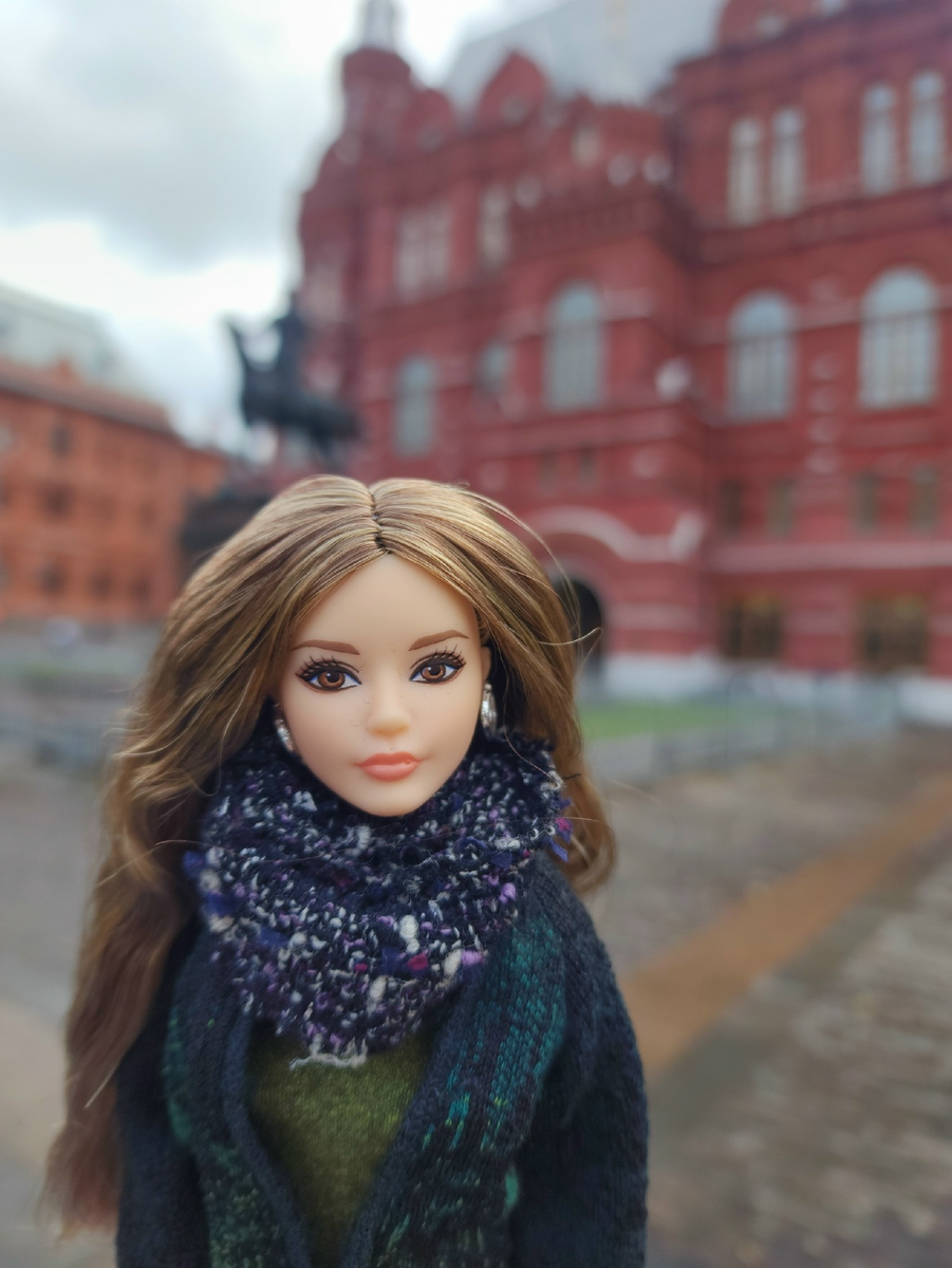 Здравствуйте. Так уж получается, что пишу я с задержкой. Вот уже и в Великий Новгород съездила, а о московской поездке еще ни строчки не написала. А поездка была интересной и фотографий Кэролайн привезла много. В первый день мы были настоящими туристами, впервые приехавшими в Москву. То есть, был стандартный набор - Красная площадь, Кремль, автобусная экскурсия. Это связано с тем, что гуляли мы не одни с Кэролайн, а показывали столицу моей подруге с семьей. Начали мы с Красной площади. Отправная точка всех туристических маршрутов и первое в списке место посещения всех туристов. До экскурсии в Кремль у нас оставалось немного времени и мы прогулялись по площади, зашли в ГУМ... Сфотографировались на нулевом километре... Прошли к скульптуре "Времена года" на Манежной площади. Фонтаны уже не работают, осень... Тыквочки я уже показывала, но мне так нравится это яркое фото. А потом мы отправились в Кремль. Нужно сказать, что кукол там фотографировать непросто. Часто дует ветер и их, буквально