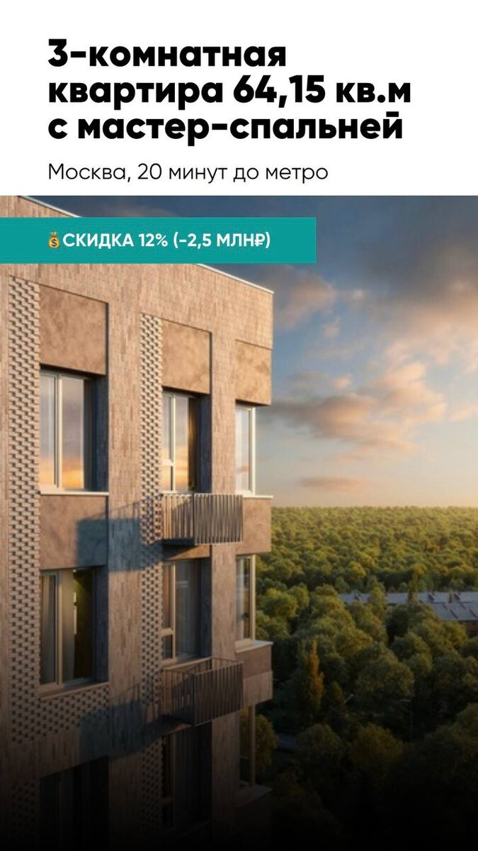 3-комнатная квартира с платежом от 50 000₽⚡ А еще с мастер-спальней, лоджией и скидкой до 12% (2,5 млн₽) 3 варианта оплаты на ваш выбор: Семейная ипотека: Стоимость: 18 446 425₽ ПВ: 6 446 425₽ Ставка: 6% Платеж: 72 000₽ Рассрочка: Стоимость: 20 961 846₽ ПВ 10%: 2 961 846₽ Платеж: 100 000₽ Остаток: до 25.06.2026 Рассрочка 2: Стоимость: 19 704 136₽ ПВ 51%: 10 049 109₽ Платеж: 50 000₽ Остаток: до 25.09.2026 Рассрочка 3: Итоговая цена: 18 865 662₽ ПВ 70%: 13 205 963 руб. Остаток: до 25.09.2026 Что вы получаете вместе с квартирой: — 700 гектаров парковой зоны вокруг ЖК — Школы, детские сады и ТЦ в шаговой доступности — Всего 20 минут пешком до метро «Коммунарка» — Два двора-сада: спортивные зоны, площадки, беговые дорожки и тихие уголки для отдыха — Пешеходная галерея с магазинами прямо на первых этажах Количество квартир со скидкой ограничено. _______ 🔥Пишите в WhatsApp, чтобы узнать детали и забронировать!