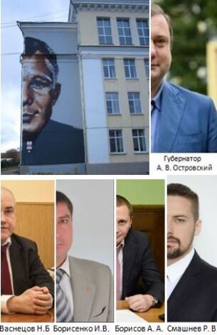 Изобразил в очередном заявлении в правительство главного архитектора, губернатора области (теперь уже бывшего)и его двух причастных к этому делу заместителей так, как они изобразили Гагарина - с половиной лица и с одним глазом. Пусть такой и останется чекан их души в этом мире, как памятник неразумности и непробиваемости некоторых представителей власти.