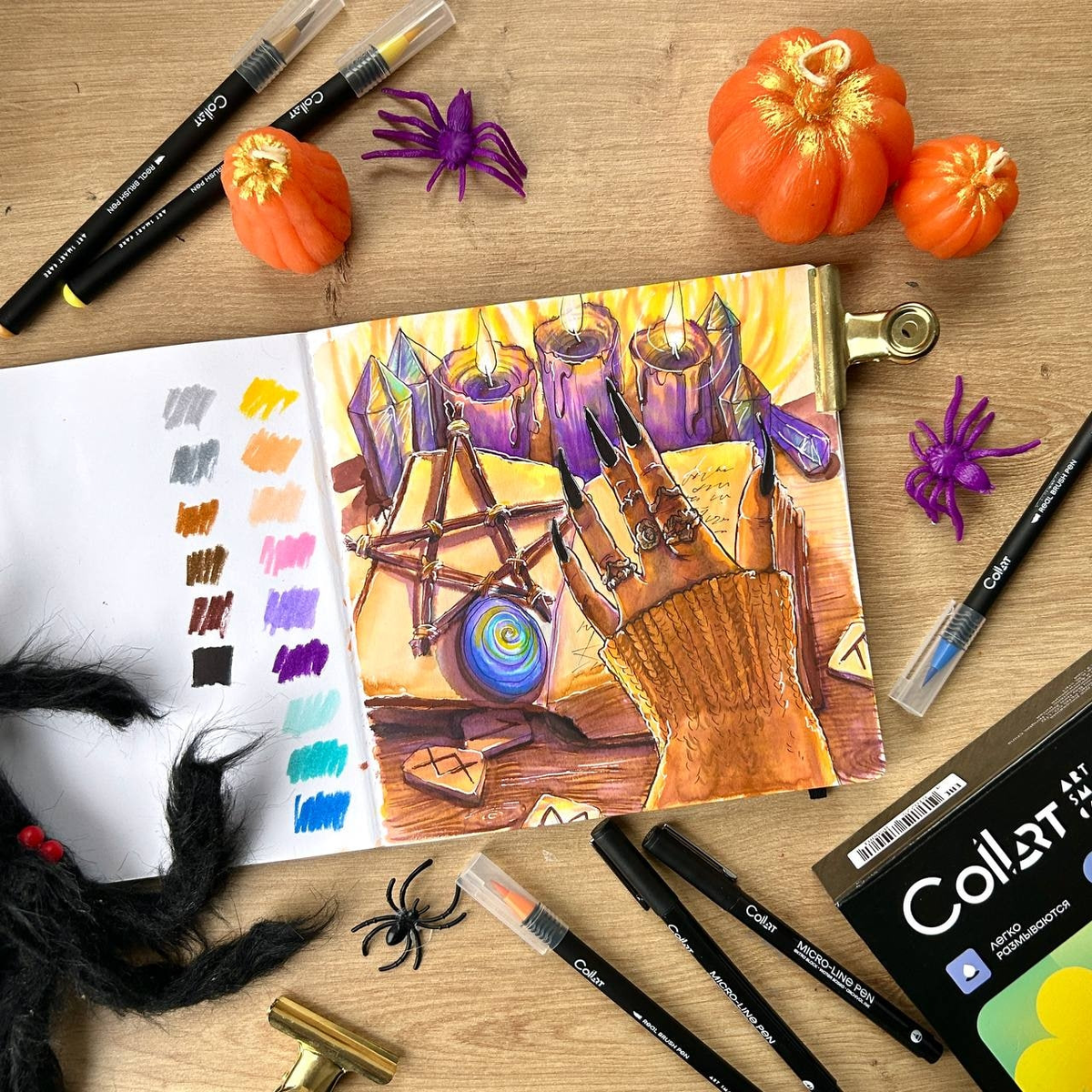 ⭐️ Вспоминаем марафон, который прошел в Dari Art в прошлом году - "Магия октября"! В этом марафоне мы рисовали волшебные сюжеты акварельными маркерами (или, по желанию, акварелью) 🎨 ✔️Материалы для всех уроков "Магии октября": - Скетчбук для акварели, плотность 200 гр, целлюлоза, 19х19 см - Линеры водостойкие 01 и 03 - Маркеры акварельные, цвета: серый светлый, серый темный, охра, два оттенка коричневого (светлый и темный), черный, желтый, два оттенка оранжевого (светлый и темный), розовый, фиолетовый светлый, фиолетовый темный, два оттенка голубого (также светлый и темный), синий - Если вы используете акварель: желтая теплая, готовый оранжевый или алая, розовый или краплак розовый, фиолетовый, голубой, ультрамарин, серая пейна, охра желтая, умбра жженая и черный - Белая ручка либо белый маркер для бликов - Баночка с водой - Кисть с мягким ворсом и тонким кончиком, чтобы добавлять воду и размывать акварельные маркеры - Если вы рисуете акварелью - удобная кисть для работы - Простой кар