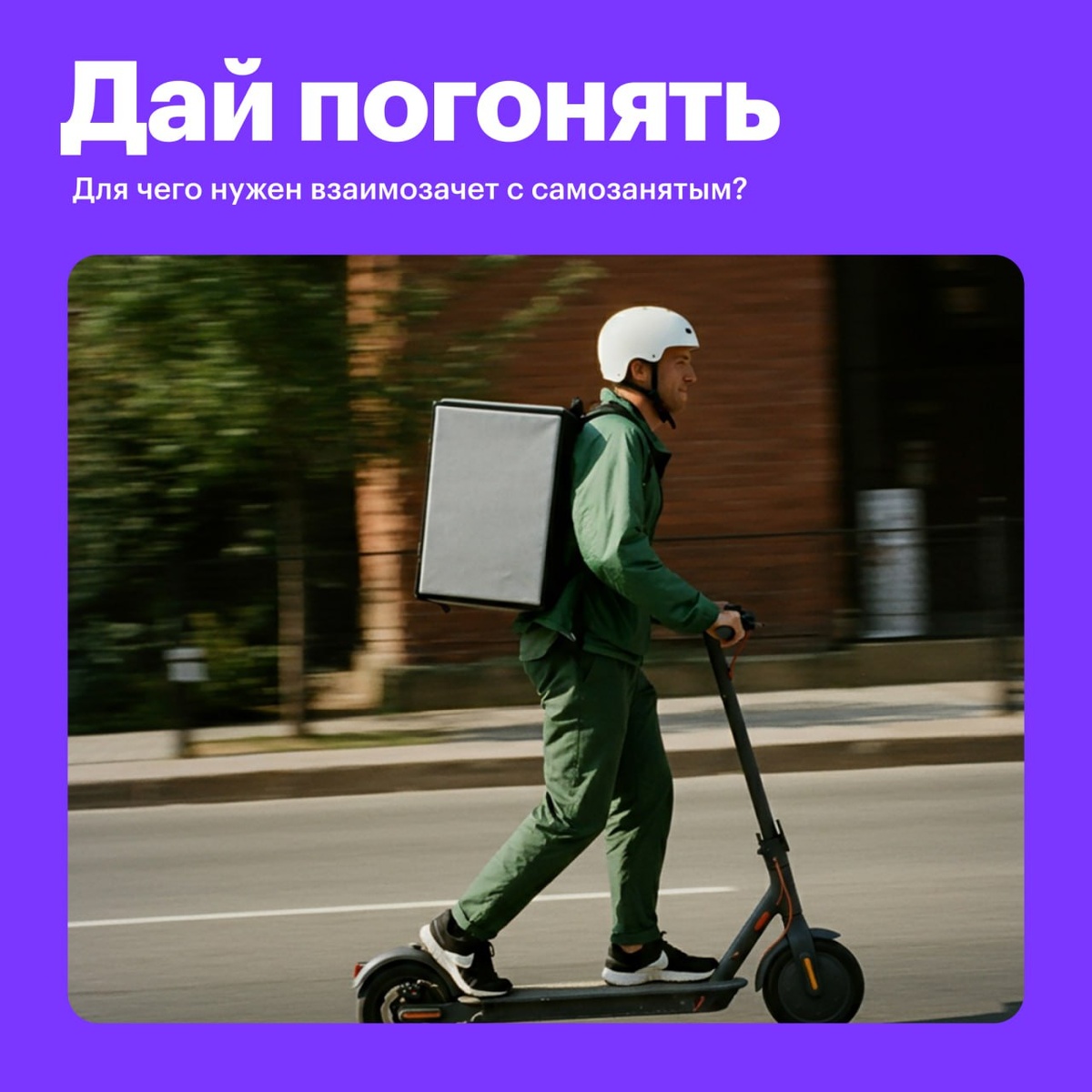 Дай погонять — для чего нужен взаимозачет с самозанятым? 〰 Иногда исполнители не обладают собственной техникой или другими ресурсами для оказания услуги. Например, у курьера может не быть самоката. Но заказчик вполне может дать ему свой на время, а позже вычесть стоимость его аренды ➡️ Оформлять такие сделки лучше всего через функцию «Взаимозачет» в «Консоли». Как вы думаете, почему? Если сомневаетесь, можете сначала почитать нашу статью #играем