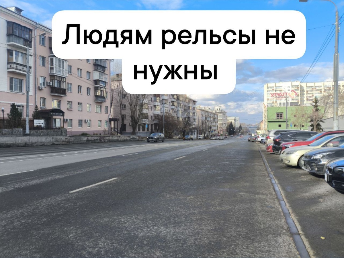 Людям рельсы не нужны На улице Красной уже давно убрали безопасный способ переходить дорогу - пешеходный переход. Когда то это была уютная улица в 4 полосы. Шум с дороги и пыль закрывали кроны деревьев. Сначала дорогу расширили ради расширения. Любой житель соседних домов вам скажет, что эта дорога пустует 99% времени. Даже по фото это видно. Но все равно, несмотря на низкий трафик машин. Несмотря на увеличение ширины улицы, переход убрали. 6 декабря 2021 году тут даже случилось смертельное ДТП с наездом на пешехода. (Теперь по статистике ГАИ это - дтп на дороге, а не наезд на пешехода на переходе, очень удобно) Но люди все равно идут там где они привыкли в далёком 2011 году. Потому что кроме самой жизни, ценно и время. Рядом две точки притяжения - парк и больница. И они не связаны между собой. Вот люди и ходят в привычном месте, тем более что машин там нет. Вы бы вернули там переход?