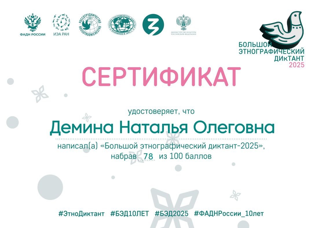День в ноябре: от демонстрации до диктанта Есть такой старый анекдот. 💬 «У известного американского журналиста, долгое время прожившего в Советском Союзе, спросили: „Как коротко охарактеризовать страну, которая занимает 1/6 часть суши?“ Он подумал совсем немного и ответил: „Октябрьские праздники они отмечают в ноябре. И так у них всё!“» Вспомнила его с утра, посмотрев на календарь и на некоторые stories в ленте 🙂. Действительно, сегодня тот самый день. Когда шли под снегом на демонстрацию, а потом — в гости или домой отмечать. 🥳 Мы с подружкой однажды даже шли во главе колонны школ Железнодорожного района. На нас была униформа, которую специально шили еще к первомайской демонстрации (в ней мы тоже маршировали с флажками). Розовые панамки в ноябре - это было эпично!🚩 Так что всех, кто был вовлечён, — с добрыми воспоминаниями! 🫶 А ещё сегодня мне на почту пришёл сертификат о прохождении «Большого этнографического диктанта». 📜 В школе диктанты не любила,а сейчас — как давай пис