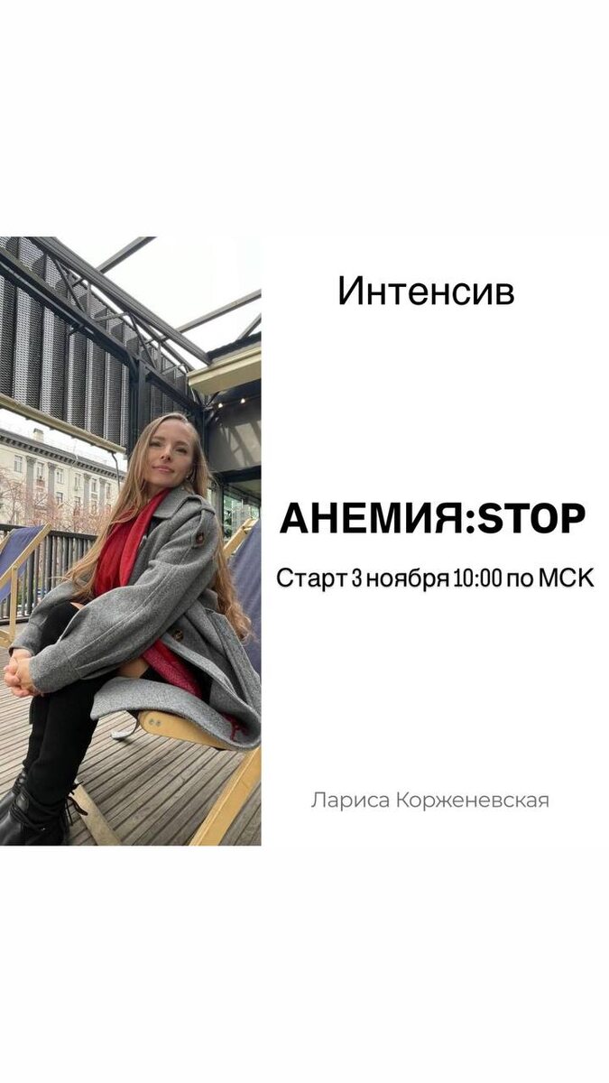 Двухнедельный 🎬🎬🎬 для женщин, которые устали бороться с анемией в одиночку Вы просыпаетесь уже разбитой. Каждая чашка кофе — не ритуал, а попытка «завести» тело. Если кофе не сработал, то вы переходите на гранаты килограммами, яблоки, force-мажорите себя гречкой, но анализы все так же пугают, а усталость стала вашим вторым «я»? Ваше тело кричит о помощи, и этот крик имеет название — железодефицитная анемия. Представляю двухнедельный интенсив: «АНЕМИЯ: STOP. Восстанавливаем энергию и здоровье за 14 дней» [Записаться на интенсив «АНЕМИЯ: STOP»](https://t.me/m/-BB7bysZWU6) ❕*Кому необходим этот интенсив?* 1️⃣Вам знакомо состояние «выжатого лимона» с самого утра? 2️⃣Вы видите в анализе крови низкий гемоглобин и ферритин и не знаете, что делать дальше? 3️⃣Вы сидите на «железной» диете, но результата нет? 4️⃣Вы устали от одышки, головокружений и «тумана в голове», мешающих работе и жизни? 5️⃣Вы — мама, которая истощена бессонными ночами и не успевает заботиться о себе? 6️⃣Вы акти