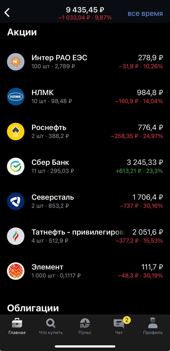 🧮 Эндаумент портфель Портфель продолжает быть в красной зоне, из акций один Сбер зеленый, все же удачно купили год назад! В облигациях чуть получше ситуация, только я на рыночную особо и не смотрю. Мне важен купон, мне нужен cash flow для реинвеста. Опять встает острый вопрос: что купить на скромные #100рублейвнеделю ? Все приличное из облигаций мы купили, остались дефолтники, но мы такое не берём. Я могу рискнуть, но не в этом портфеле. Акций на сотку нет. Поэтому выбора особо нет, буду усреднять то, что есть. Только вот думаю купить коротких, чтобы к концу года прикупить что-то приличное или что-то более длинное?) Фонды отрицаю, не готова платить комиссию за ведения фонда. Мы тут сами с усами, справимся без посторонних) Увеличивать пополнения не хочу, ибо это эксперимент. Буду ваять благотворительный капитал из того, что есть) ❗️ Не ИИР! Пятничка подкралась! У меня закончилась сверка, наконец-то можно выдохнуть!