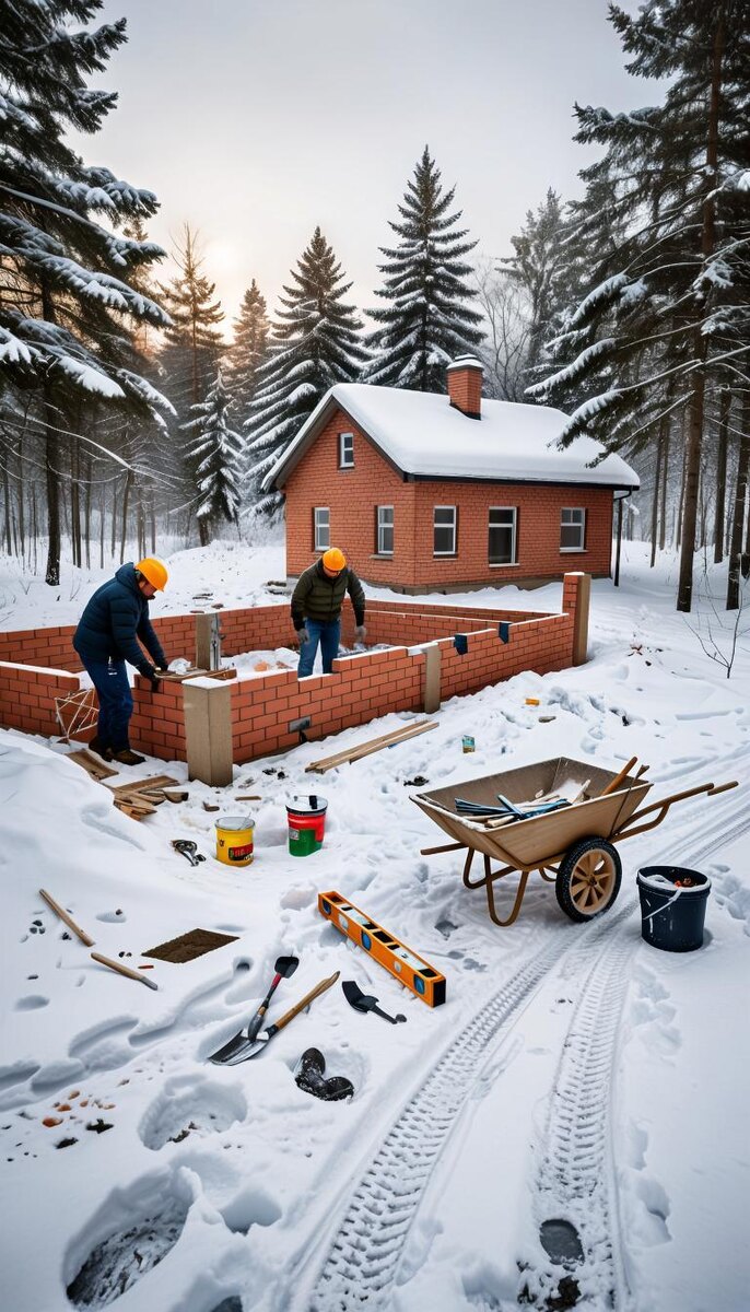 Строительство частного дома зимой имеет ряд особенностей, которые важно учитывать для успешного завершения работ. Несмотря на распространенное мнение, что зима является неблагоприятным временем для строительных работ, современные технологии позволяют вести строительство практически круглый год, включая зимний период. Рассмотрим ключевые моменты, которые следует учесть при строительстве дома зимой. ▌ Преимущества зимнего строительства Зима может предложить некоторые преимущества перед строительством в теплое время года: ▌ 1. Низкая влажность Отсутствие дождей позволяет избежать проблем с водой на строительной площадке, что упрощает процесс возведения фундамента и укладки стеновых материалов. ▌ 2. Свободные бригады строителей Многие строительные компании испытывают снижение спроса в зимнее время, что позволяет быстрее договориться о выгодных условиях сотрудничества и найме квалифицированных рабочих. ▌ 3. Экономия на стройматериалах Некоторые производители предлагают скидки на с