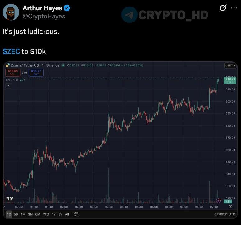😍 Влажные мечты Артура Хейса – рост #ZEC до $10,000 (twitter)