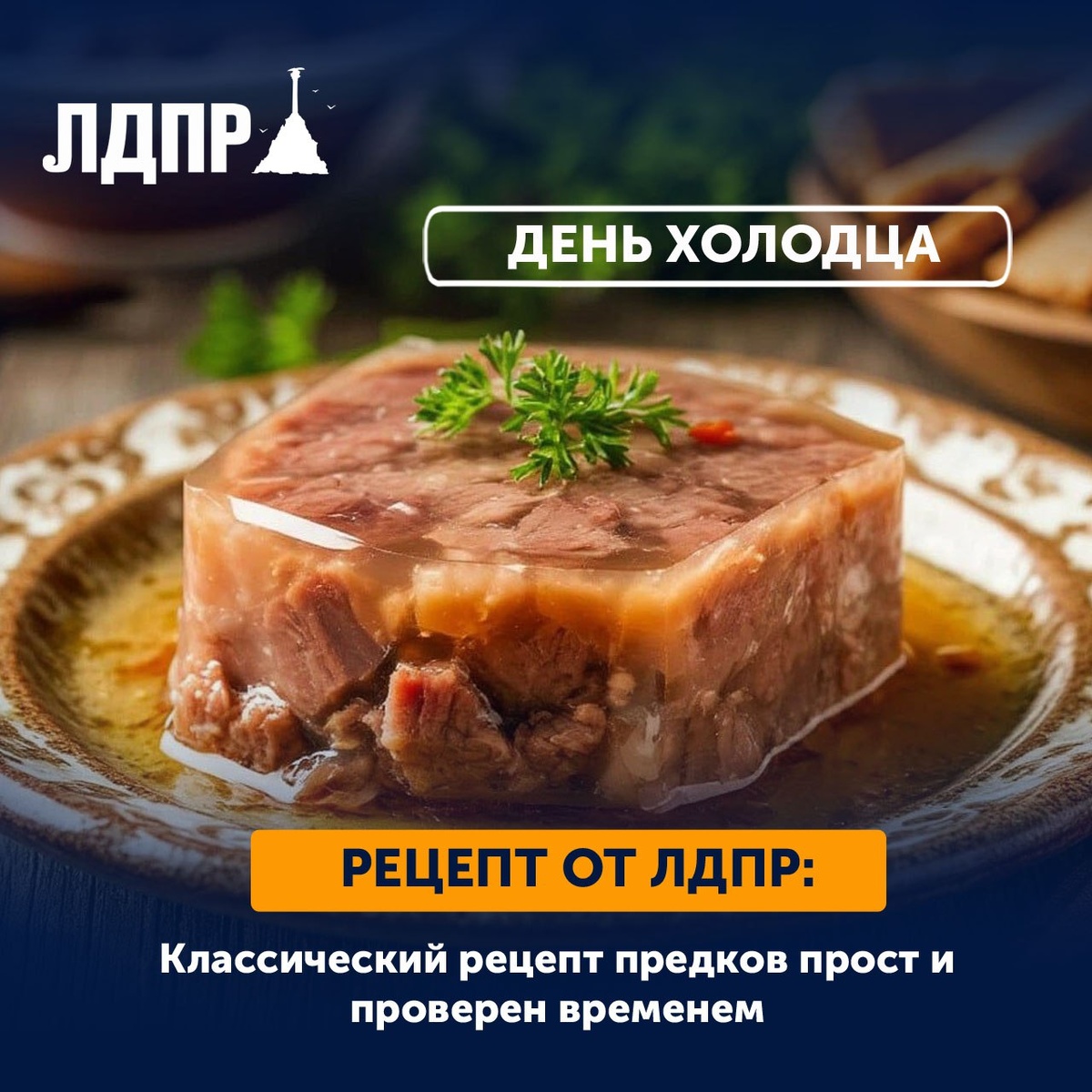 ЛДПР знакомит с необычными праздниками 7 ноября — День холодца! Севастопольское отделение ЛДПР продолжает знакомить жителей города с интересными праздниками и традициями. Не за горами Новый год, а значит, самое время думать о праздничных столах. Классический рецепт старинного холодца прост: мясо с костями варят несколько часов, выкладывают в форму, заливают бульоном и ждут, пока застынет. 🥩✨ В Севастополе к холодцу добавляют фантазию: курица, индейка, рыба или морепродукты, украшение зеленью и овощами делают его ещё аппетитнее. Пусть этот день принесёт тепло, уют и вкусные впечатления каждому дому!